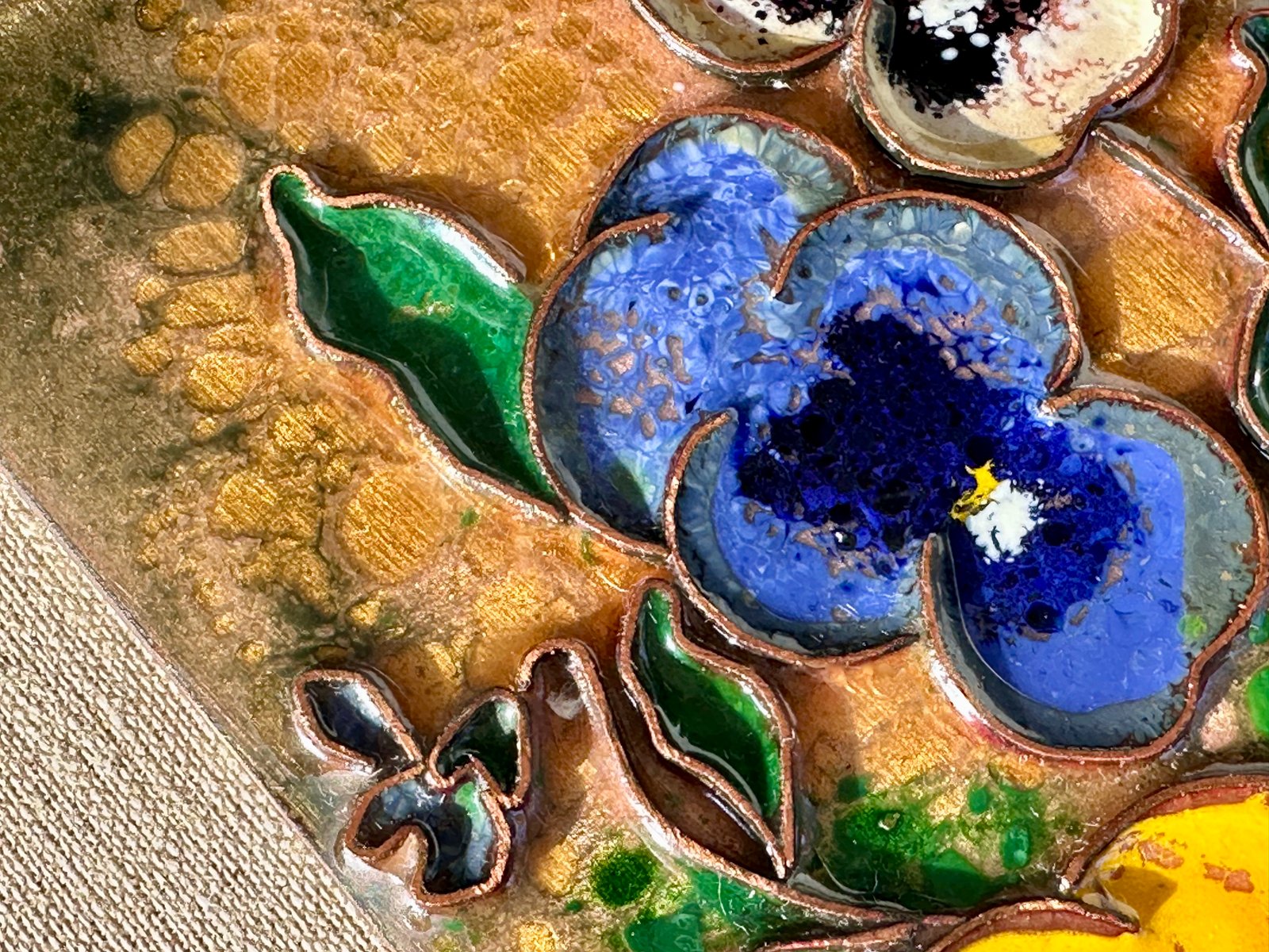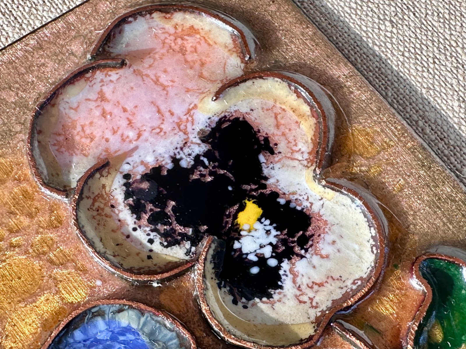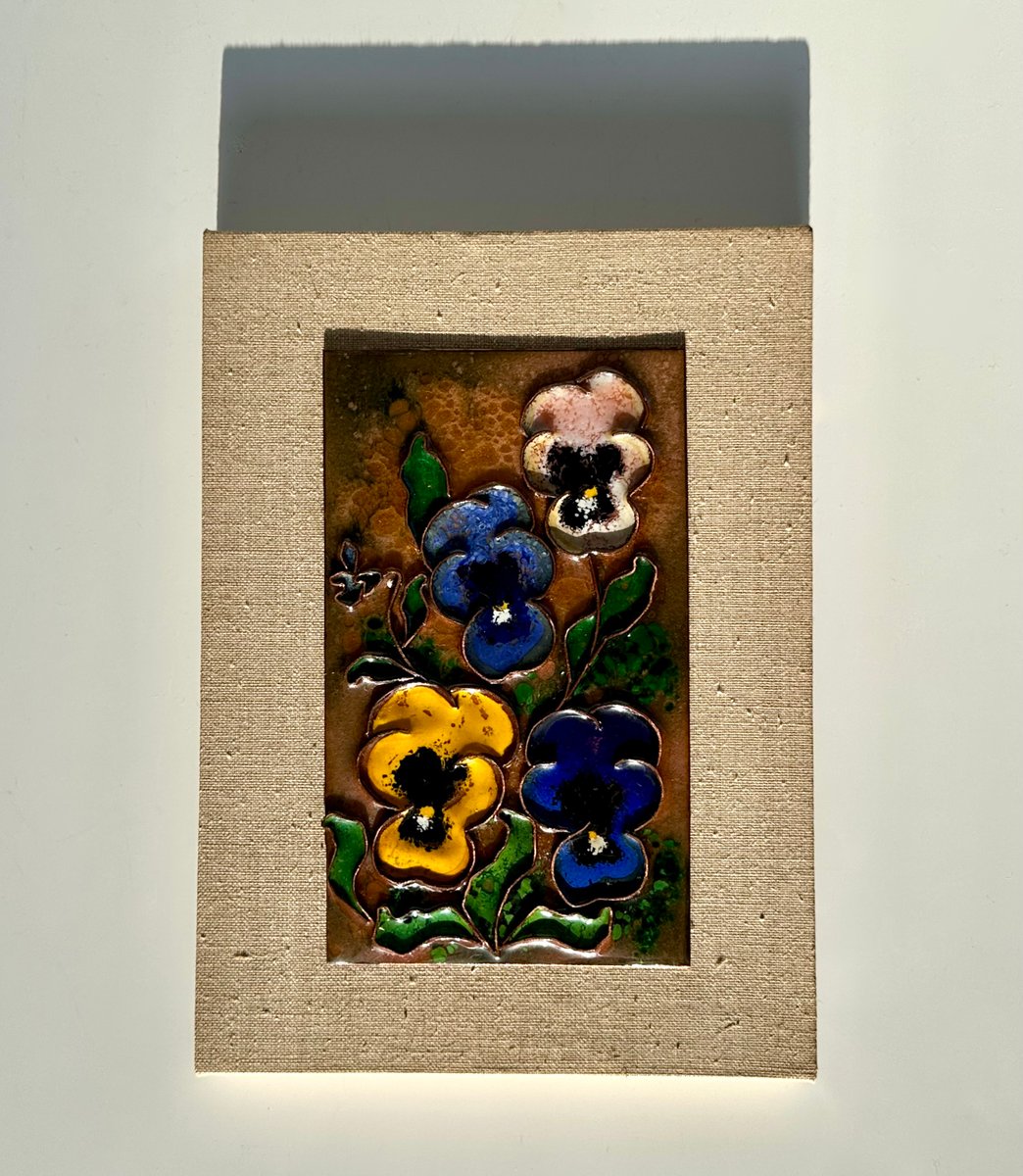 Small Enamel Art Picture in Cloisonné Technique with Floral Motif from Steg-Email, 1960s