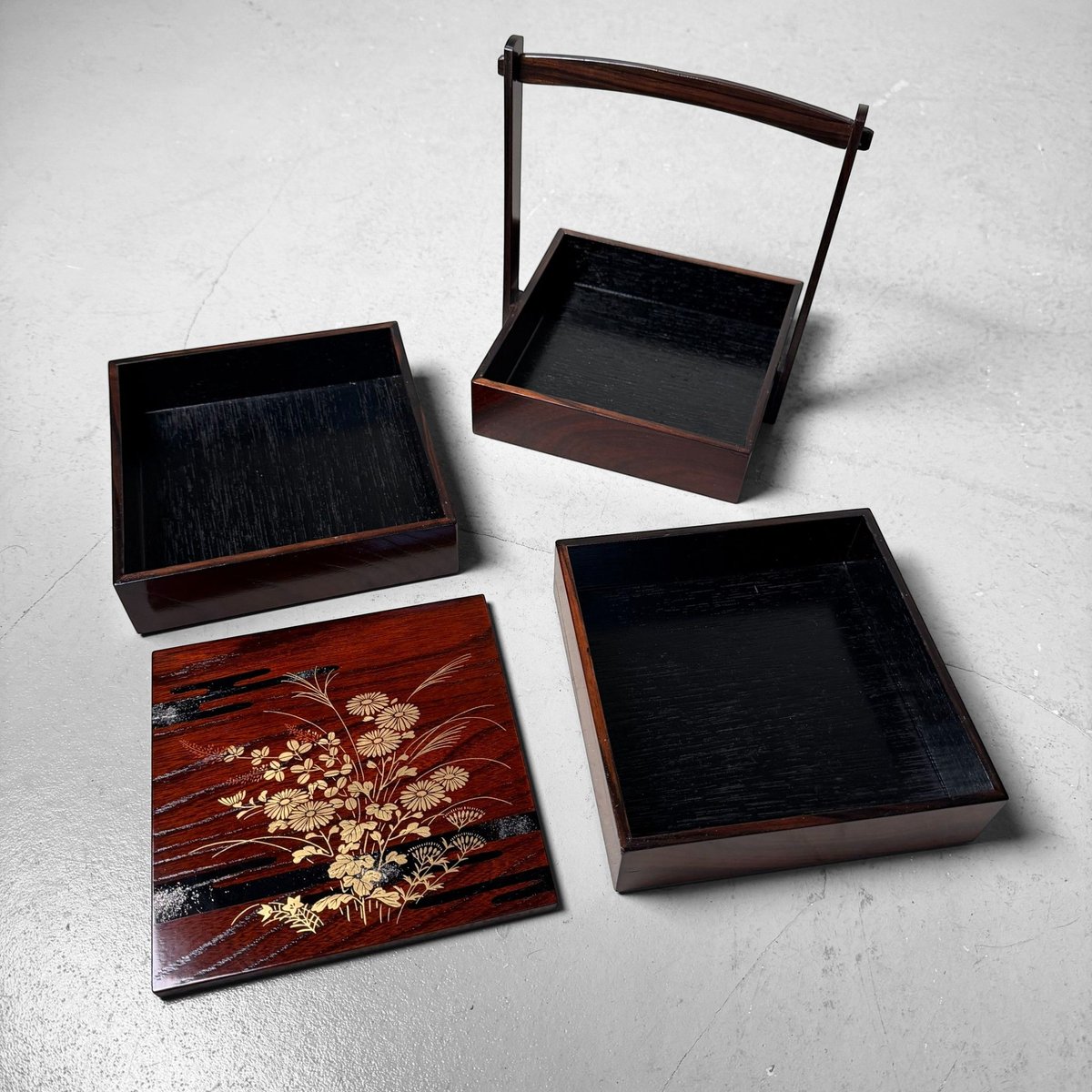 Small Japanese Keyaki Wood with Gold Decoration, 1970s