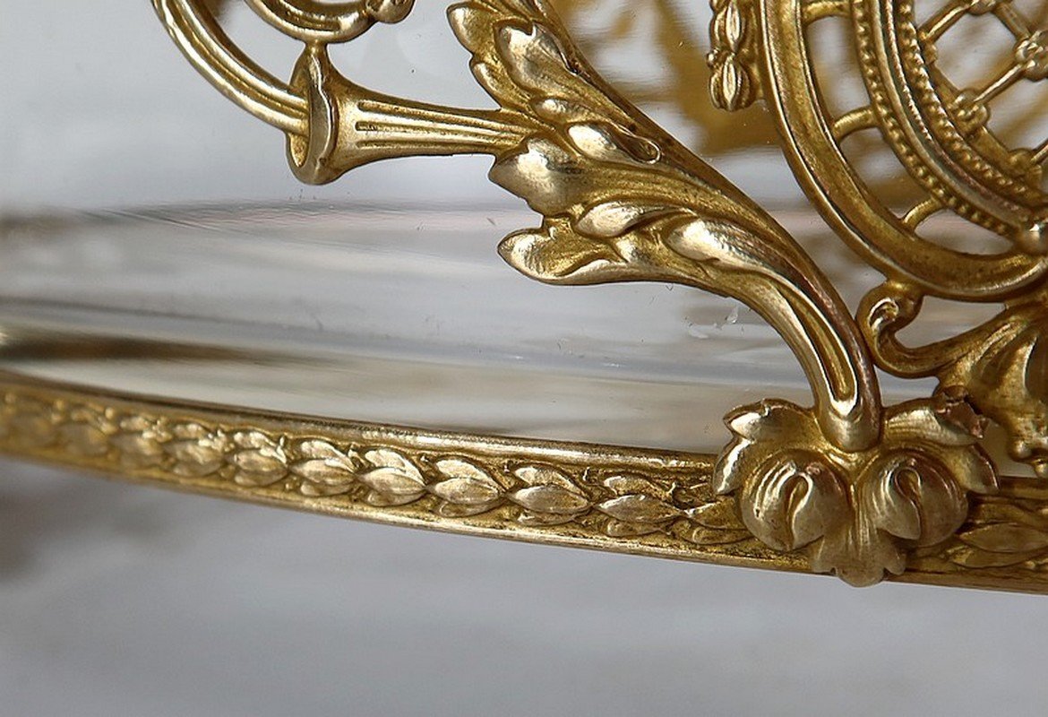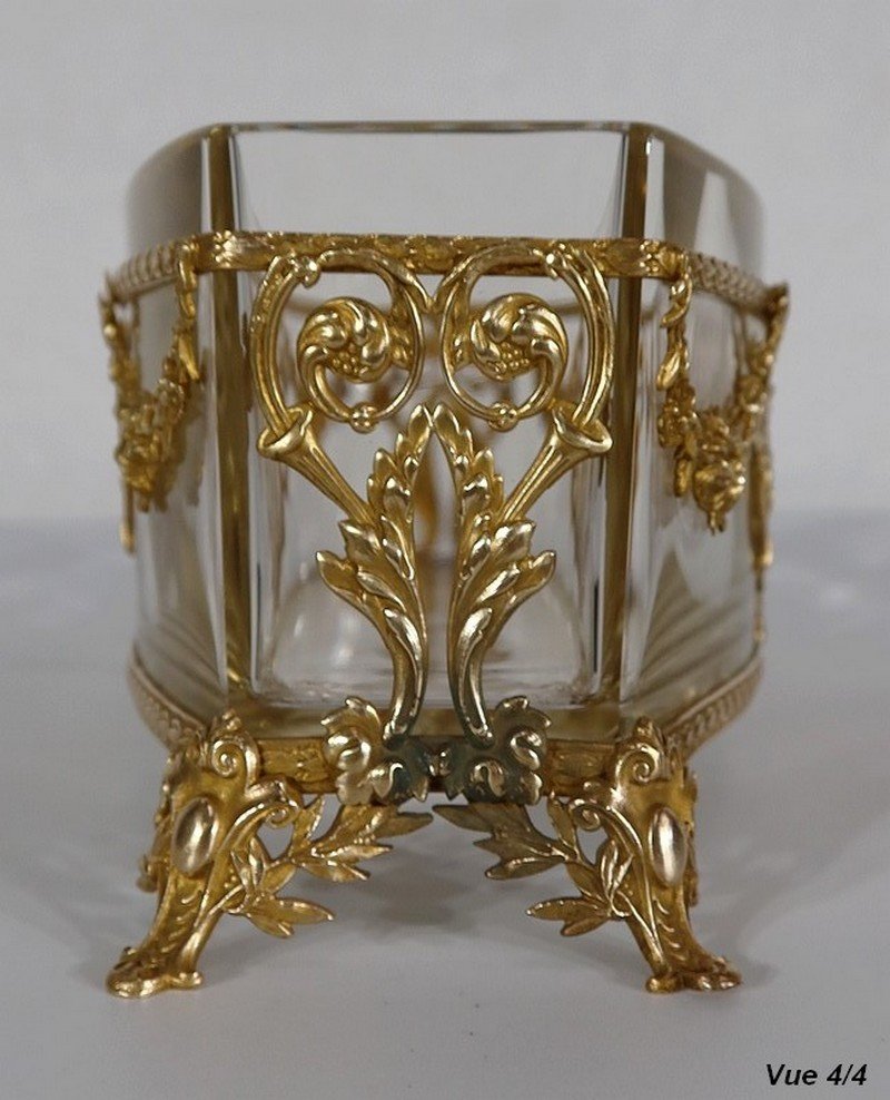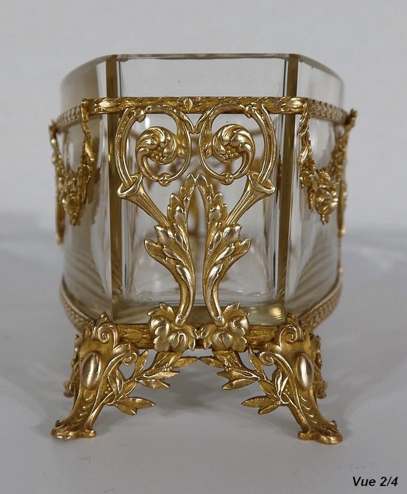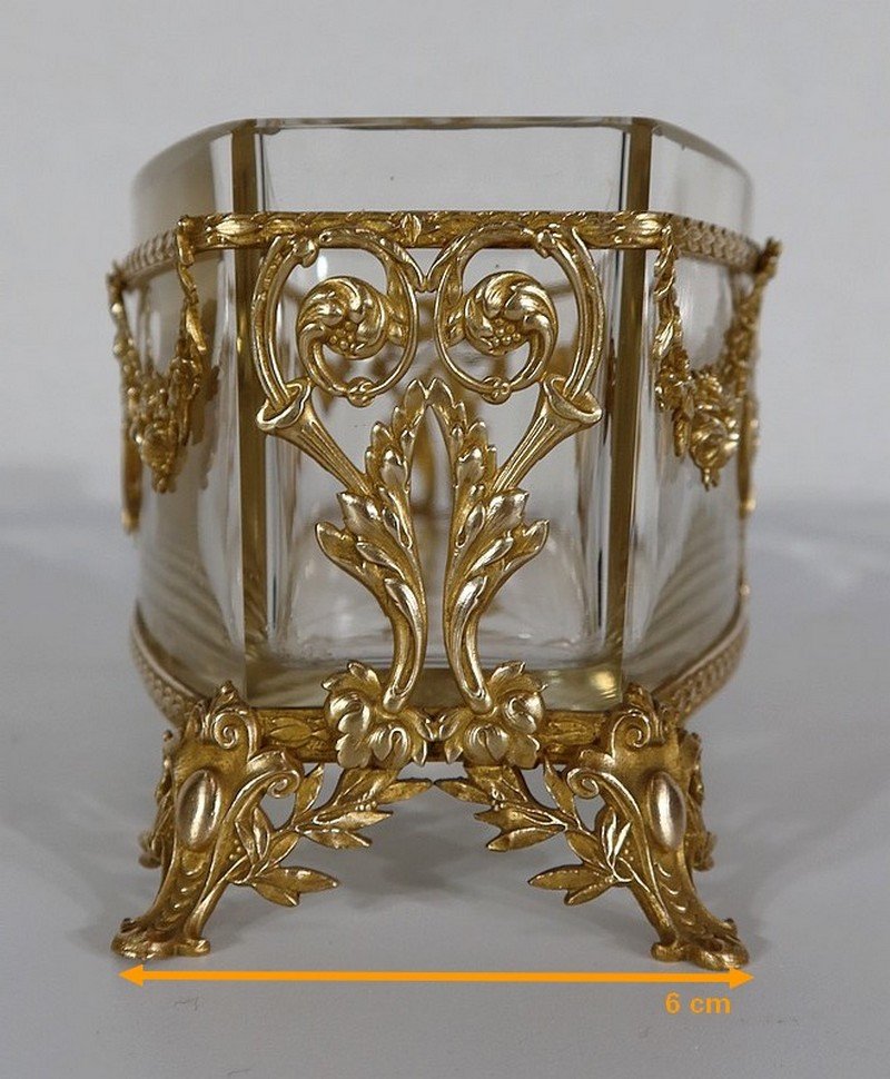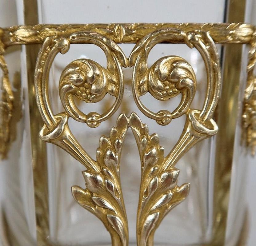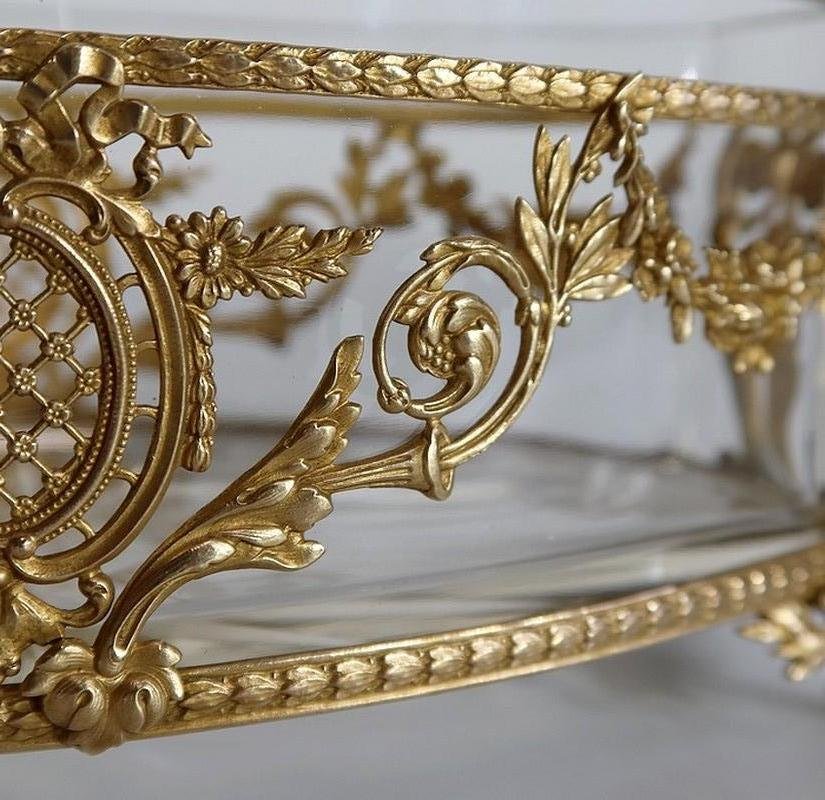 Small Louis XVI Style Glass and Brass Planter, 1900s