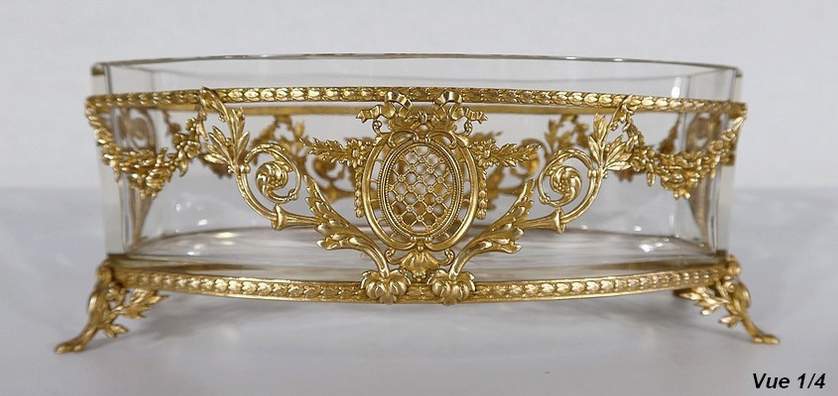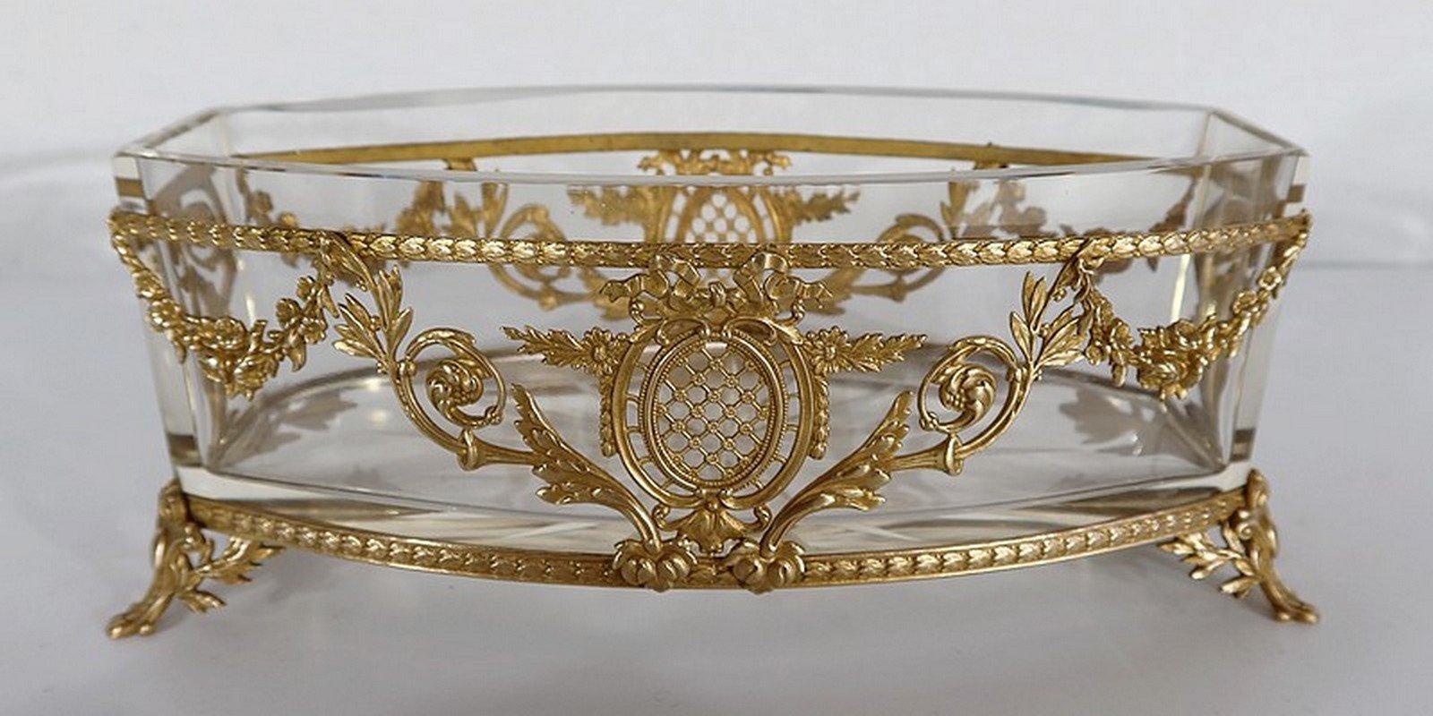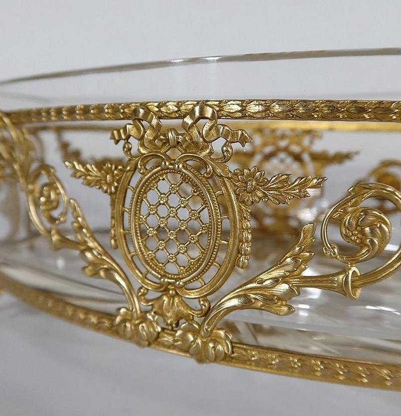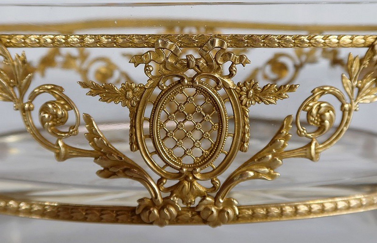 Small Louis XVI Style Glass and Brass Planter, 1900s