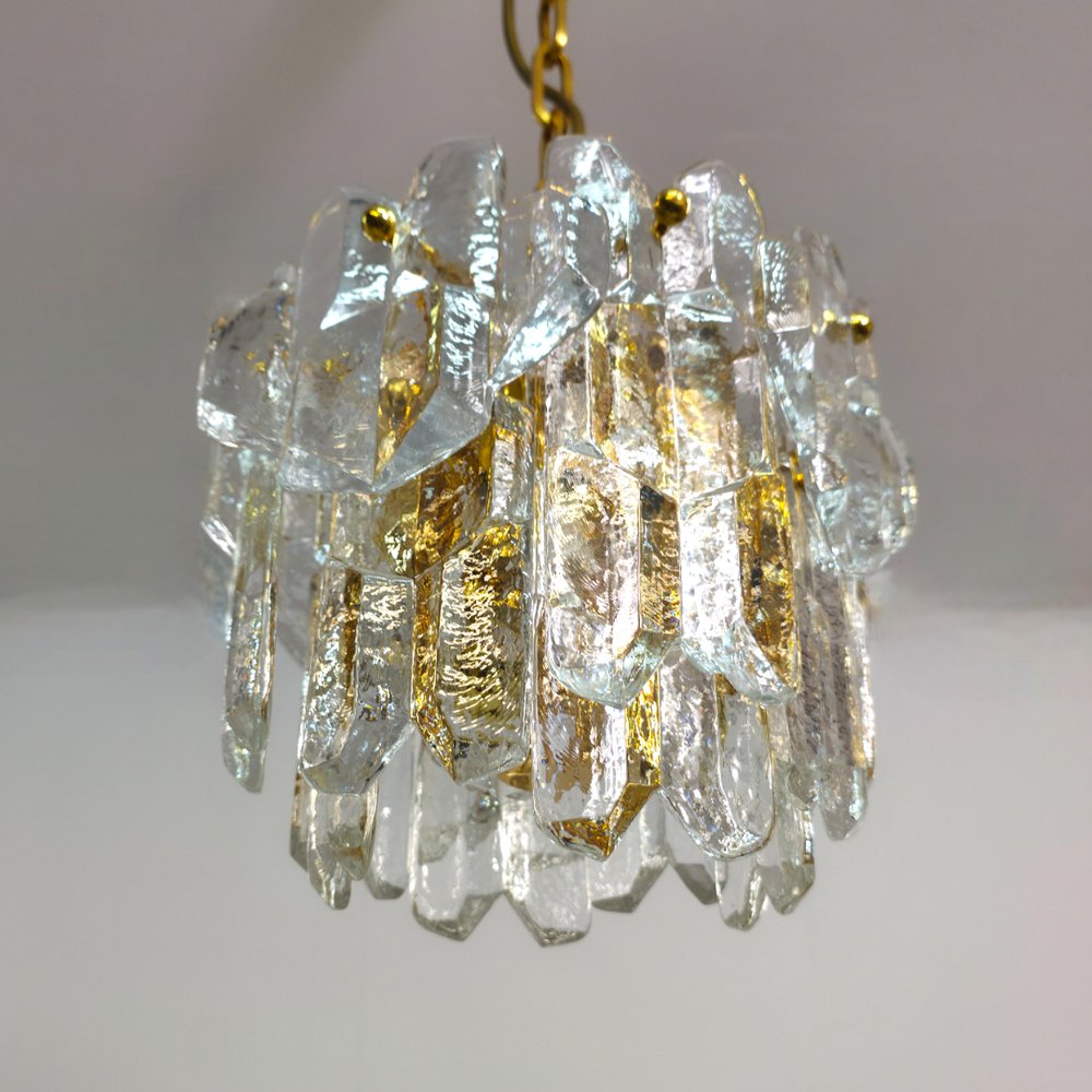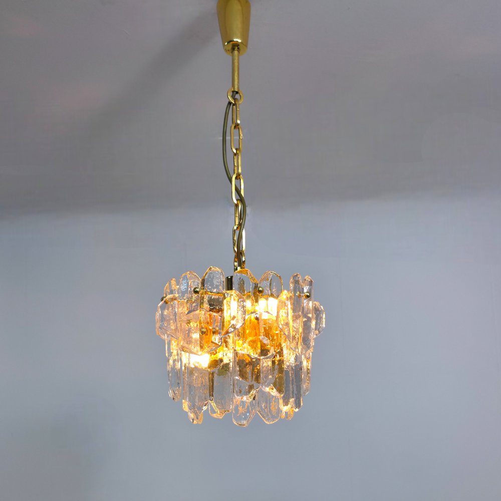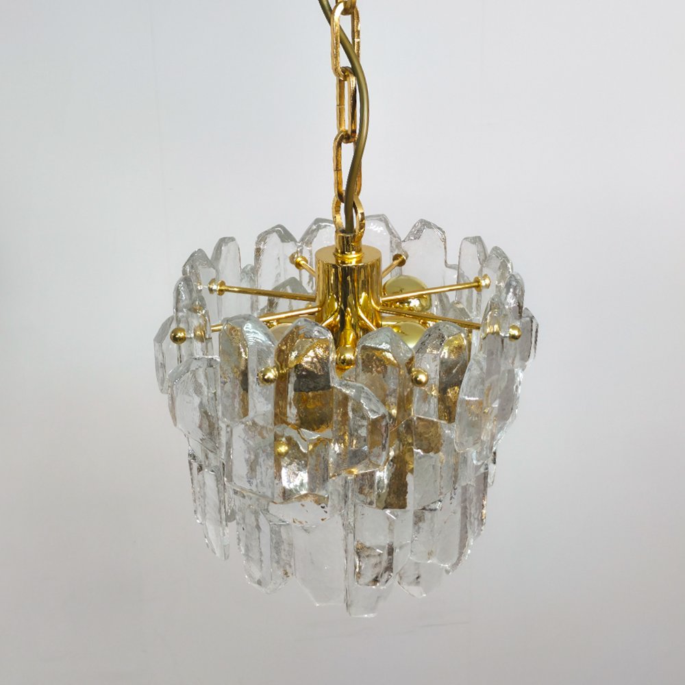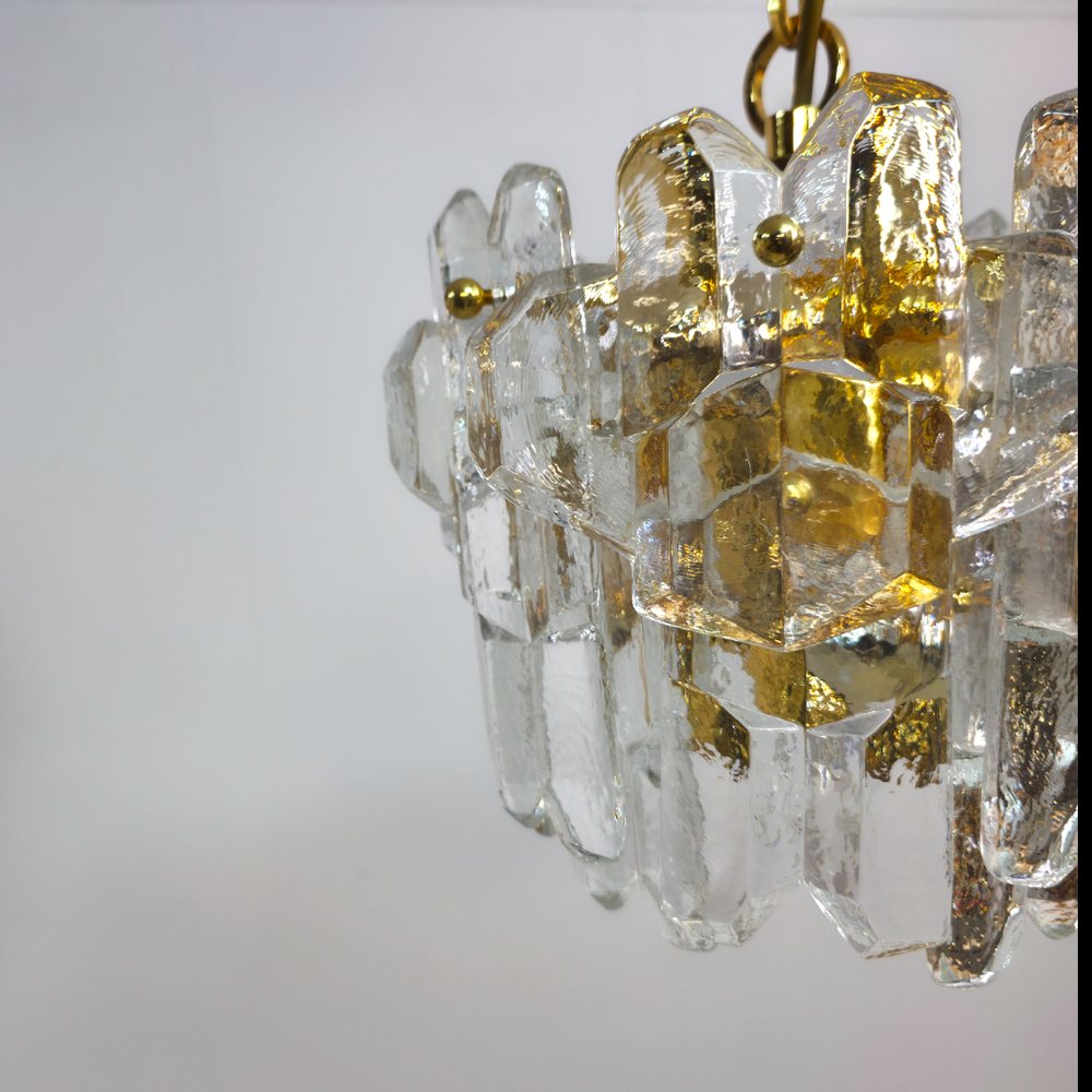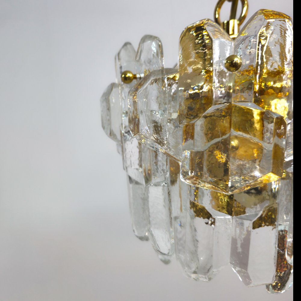 Mid-Century Ice Glass and Brass Ceiling Light from Hillebrand Lighting, 1970s