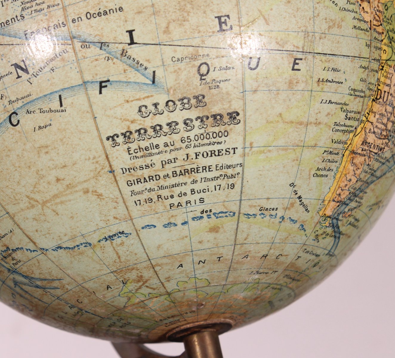 Small Terrestrial Globe by J. Forest, Published by Girard & Barrière, 1890s