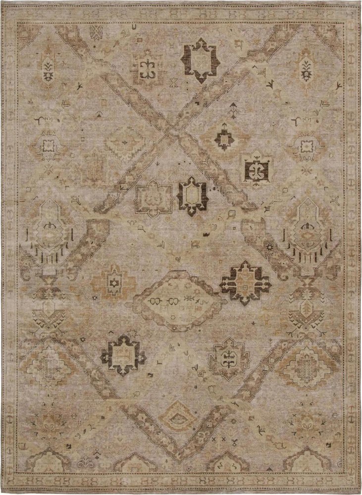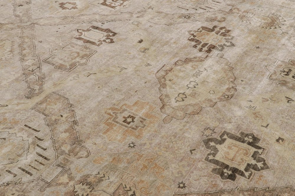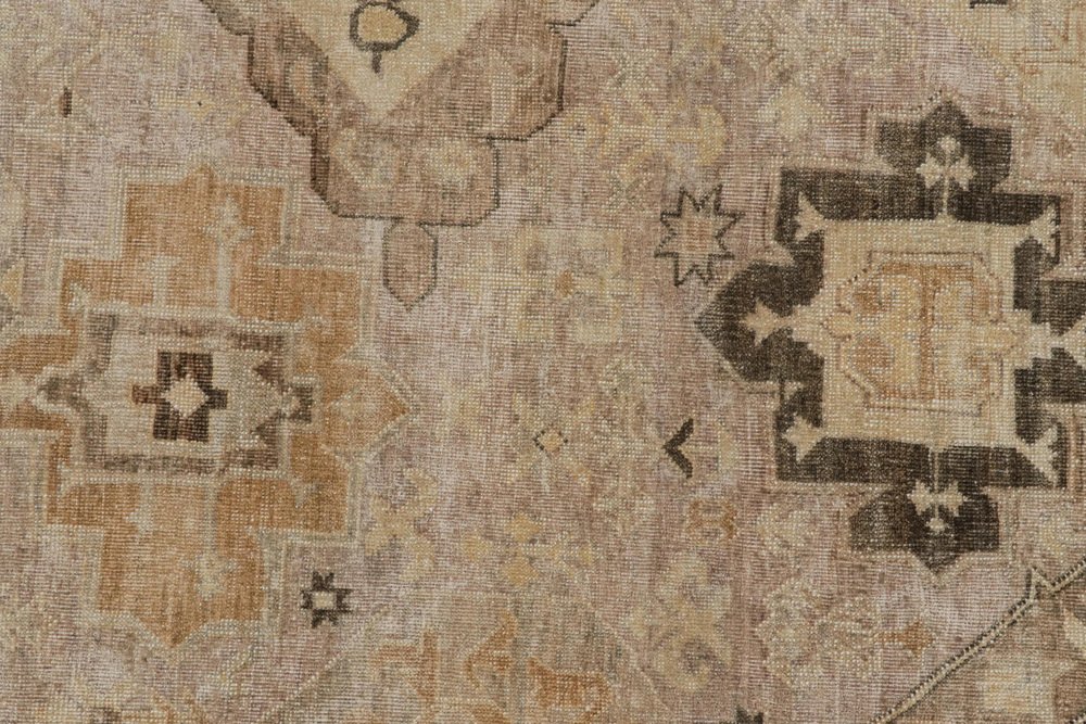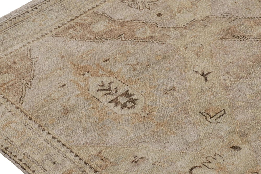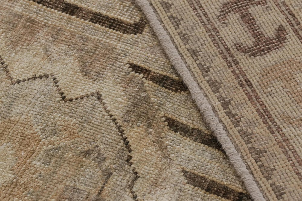 Soumak Dragon Style Rug with Beige-Brown Geometric Patterns by Rug&Kilim