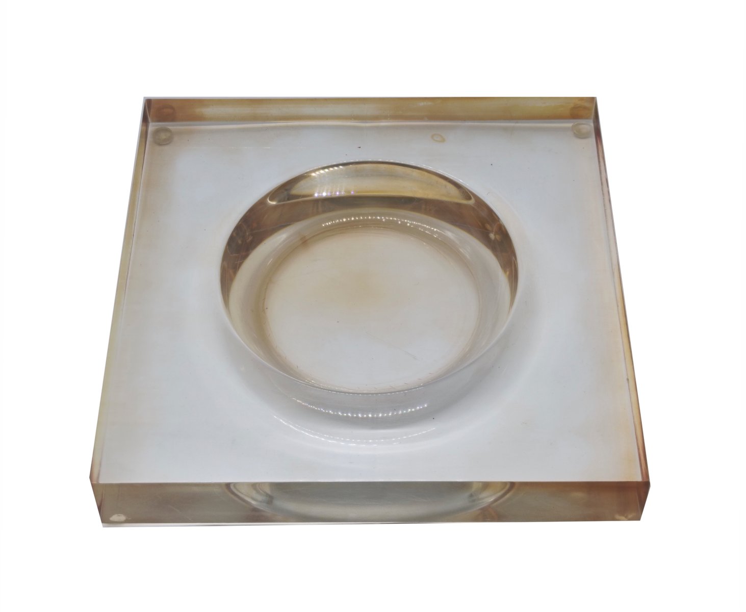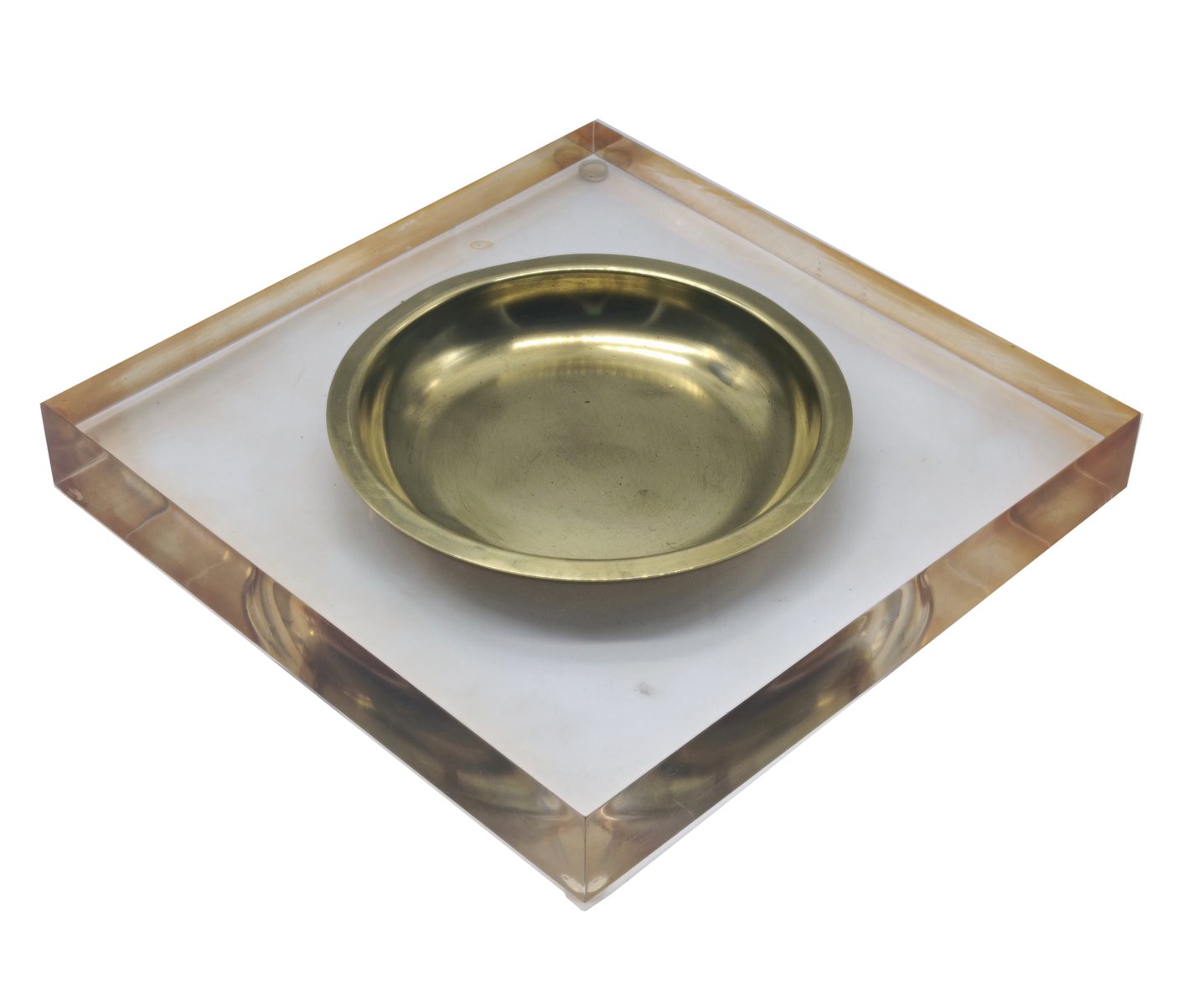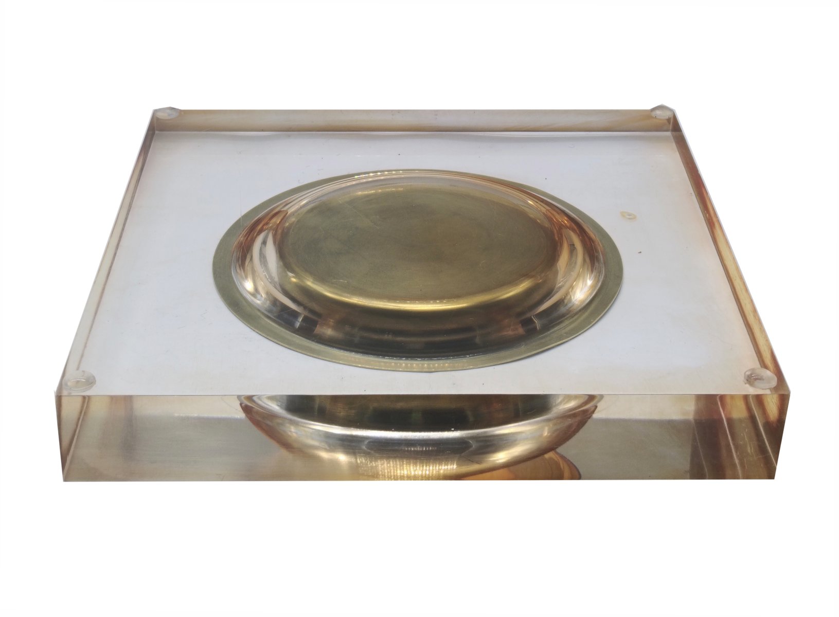 Square Acrylic Glass and Brass Coin Tray, 1970s