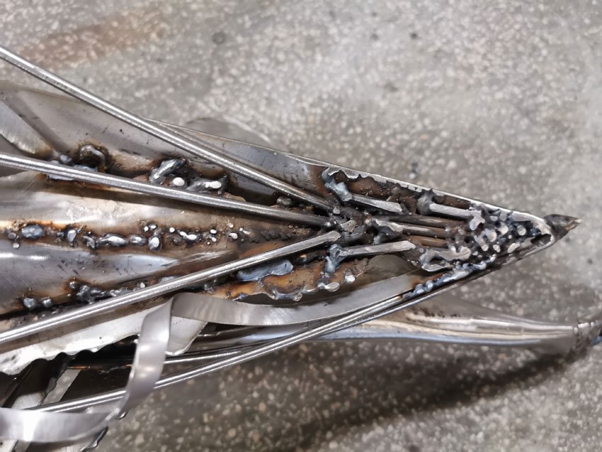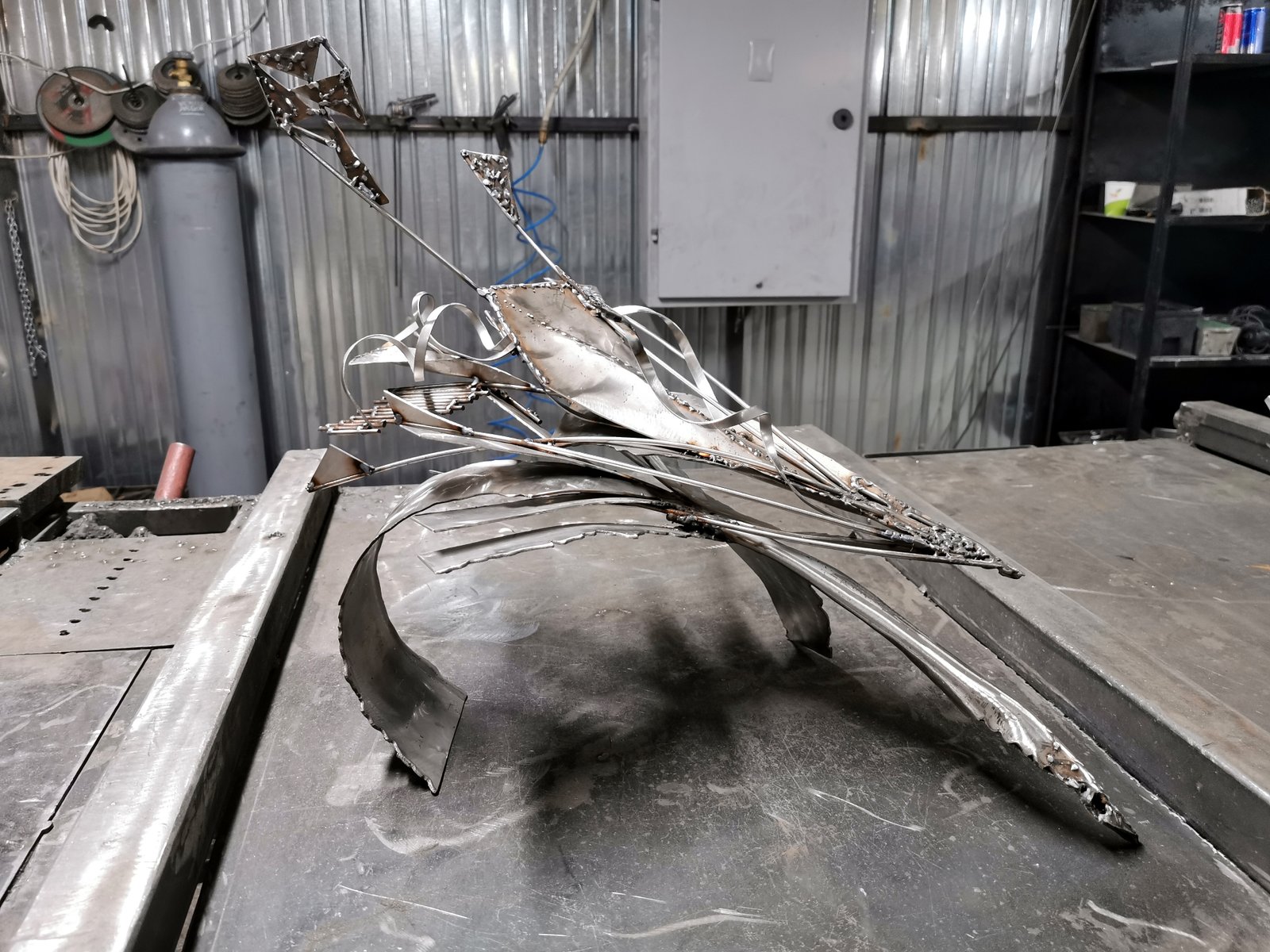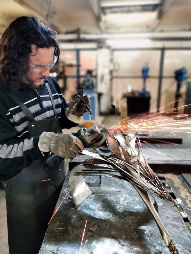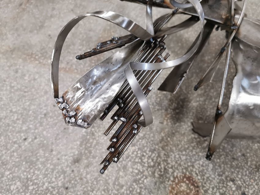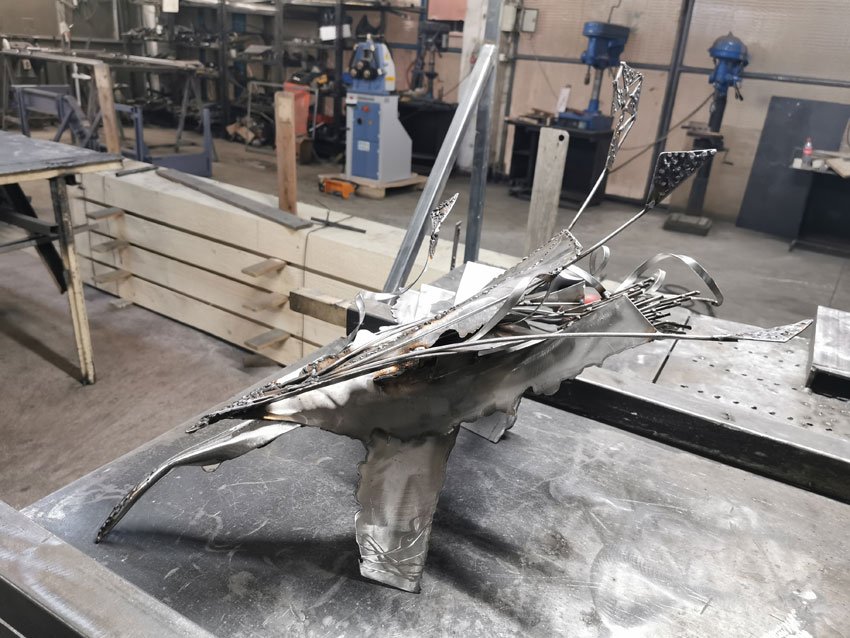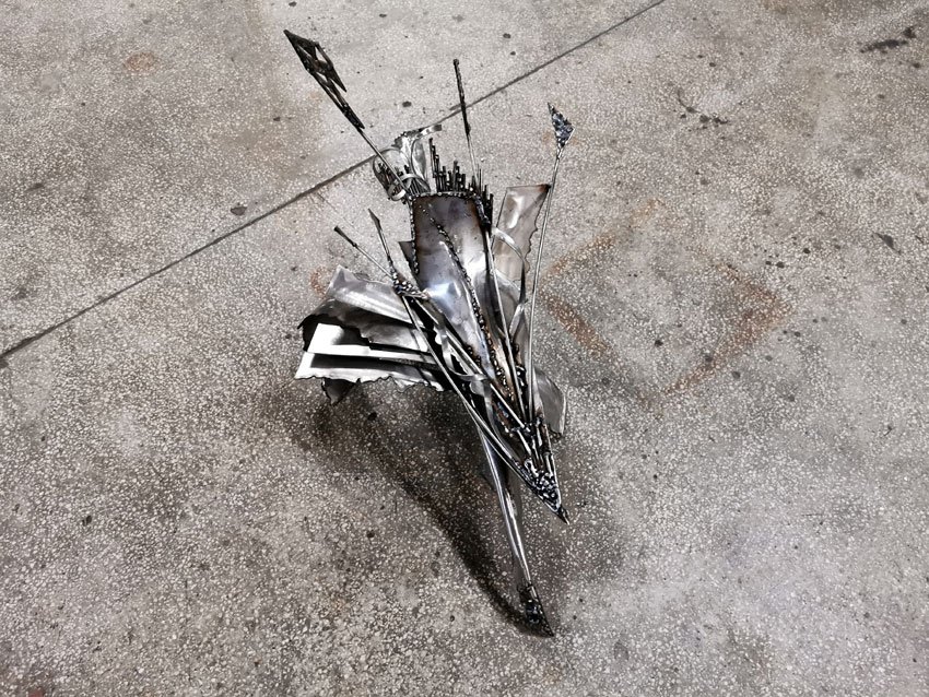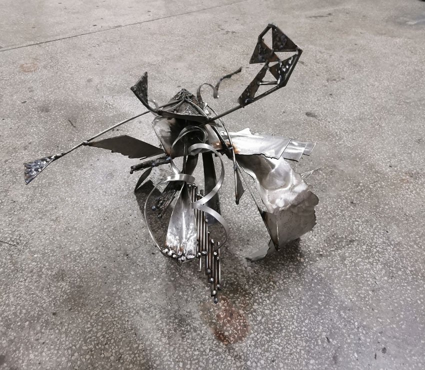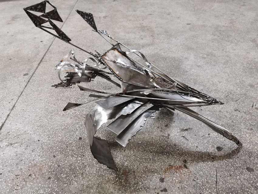 Star Bird Playing with Her Shape Sculpture in Welded Steel by Ovidiu Kloska