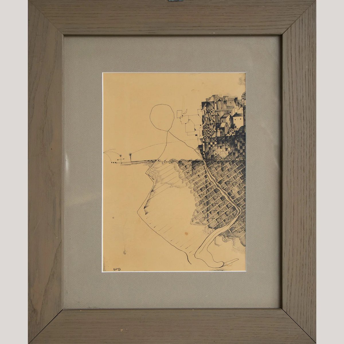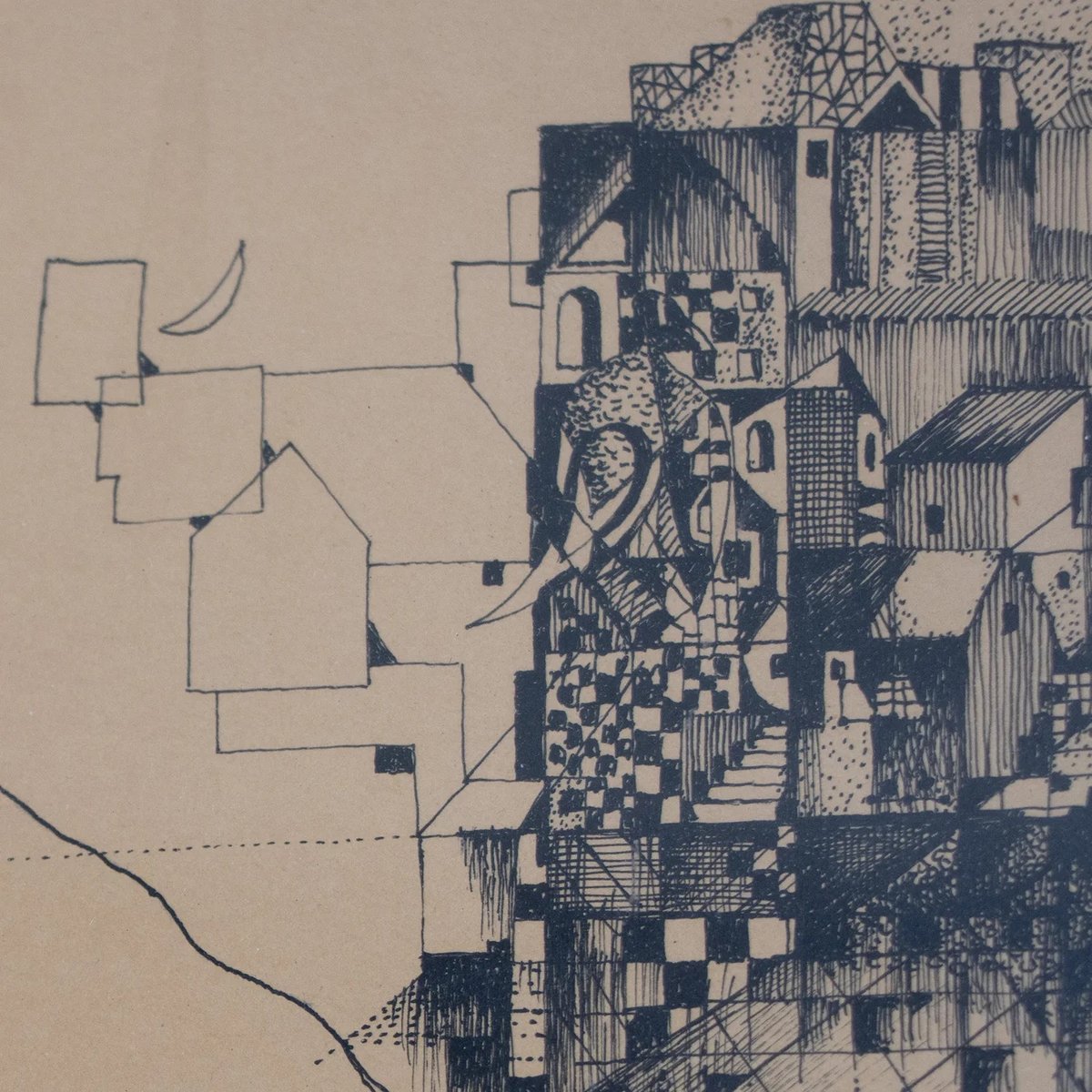 Surreal Architectural Composition, Pen and Ink Drawing, 20th Century