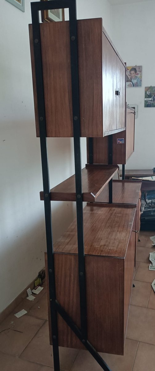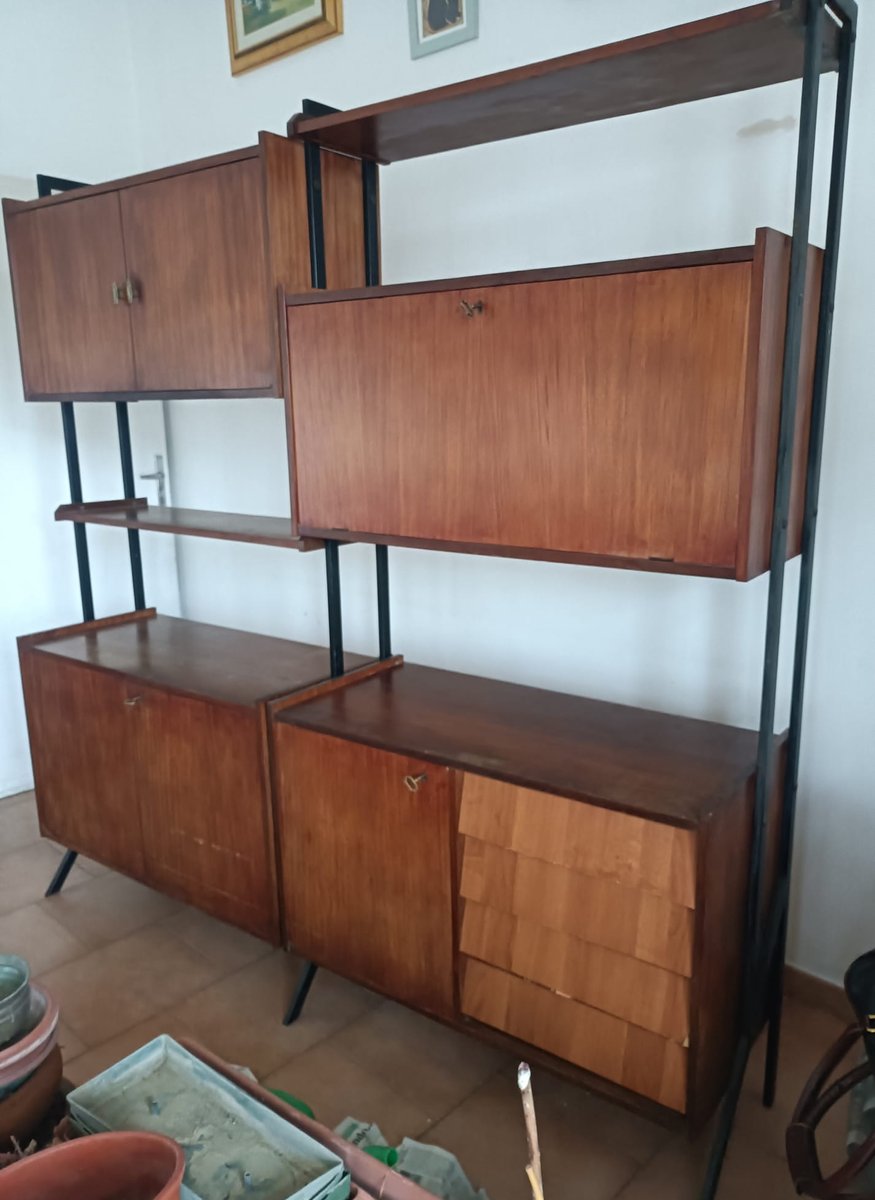 Swedish Freestanding Bookcase in Teak and Metal, 1960s