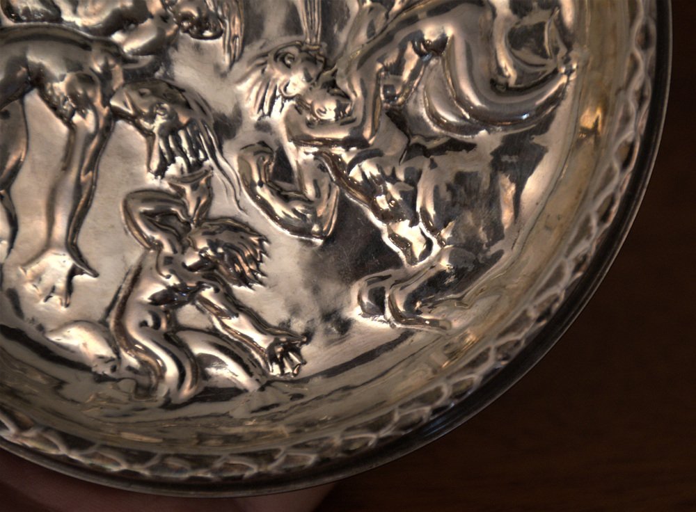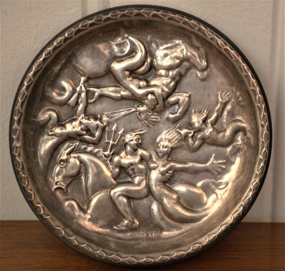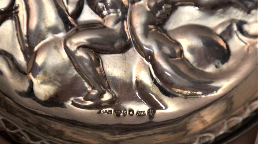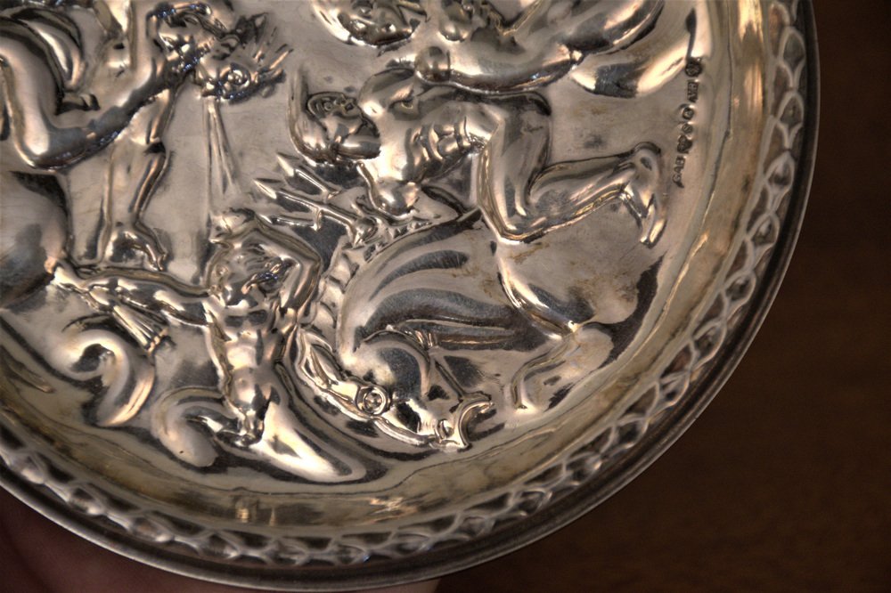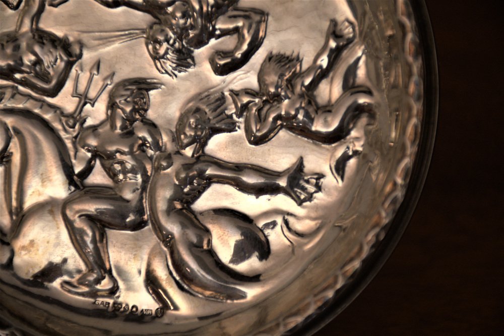 Swedish GAB Sterlingsilver and Bakelite Coasters, Made After Carl Milles "Play of the winds"