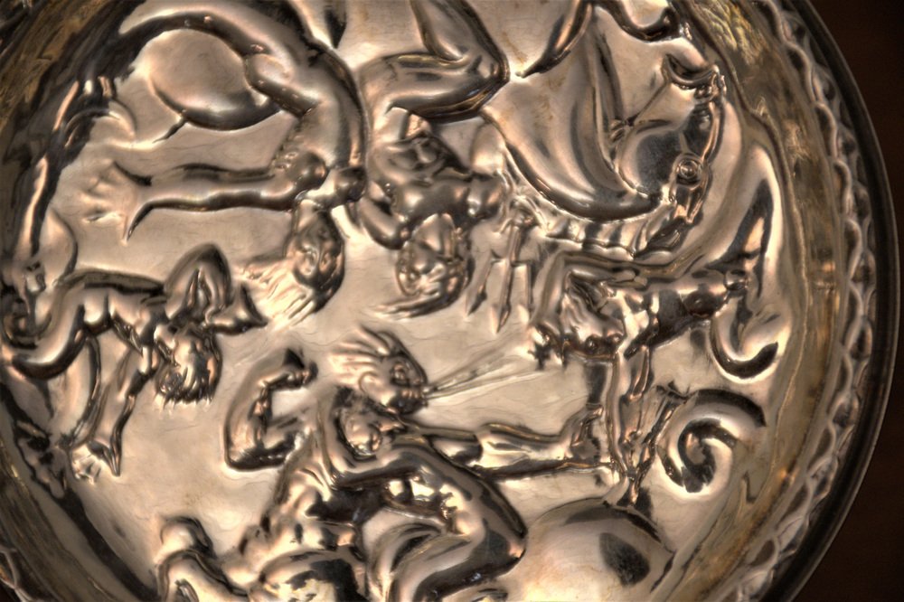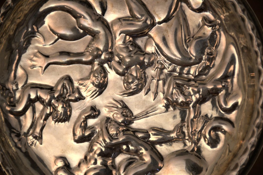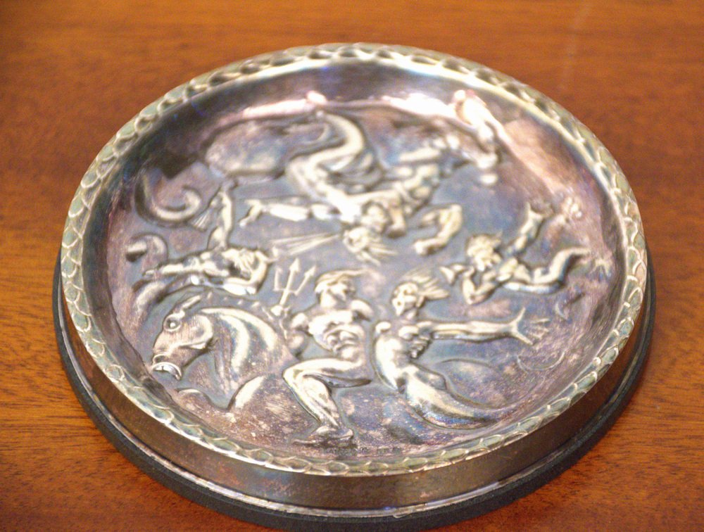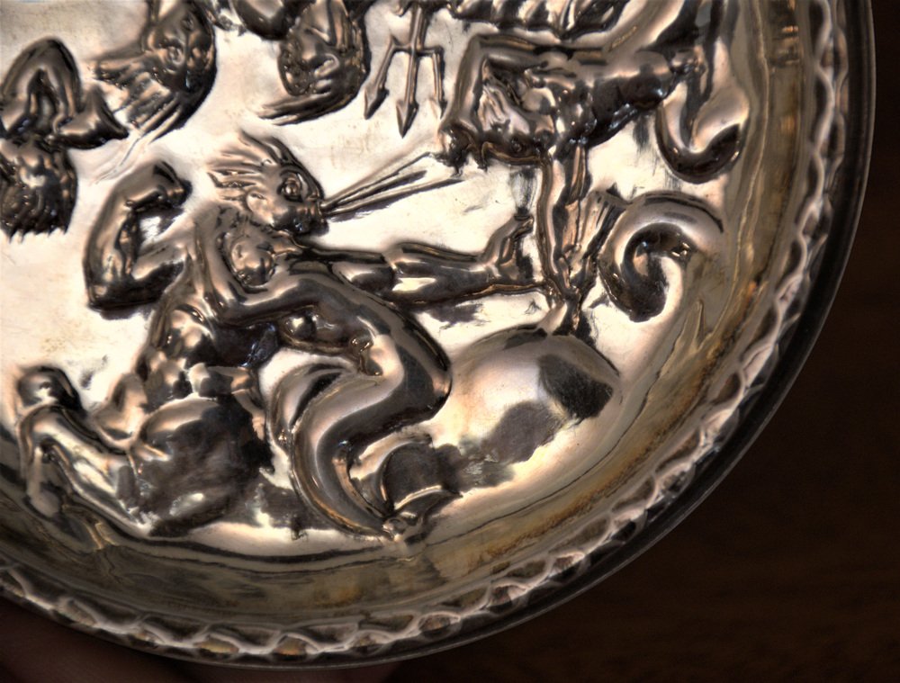 Swedish GAB Sterlingsilver and Bakelite Coasters, Made After Carl Milles "Play of the winds"
