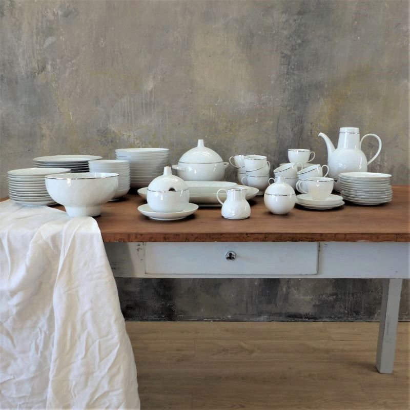 German porcelain manufactory Rosenthal was originally founded as a ceramics-painting studio by Philipp Rosenthal Sr. (1855-1937) in 1879 at Schloss Erkersreuth in Bavaria, near the Czech border. Its first highly popular product was an ashtray inscribed with the words “Resting place for lit cigars.” In 1890, the company moved to the neighboring hamlet of Selb and, a year later, began to manufacture its own porcelain, since white porcelain was, at that time, in short supply. Rosenthal’s first complete table service was called Empire; it was exhibited along with other lines at Paris’s Exposition Universelle in 1900.