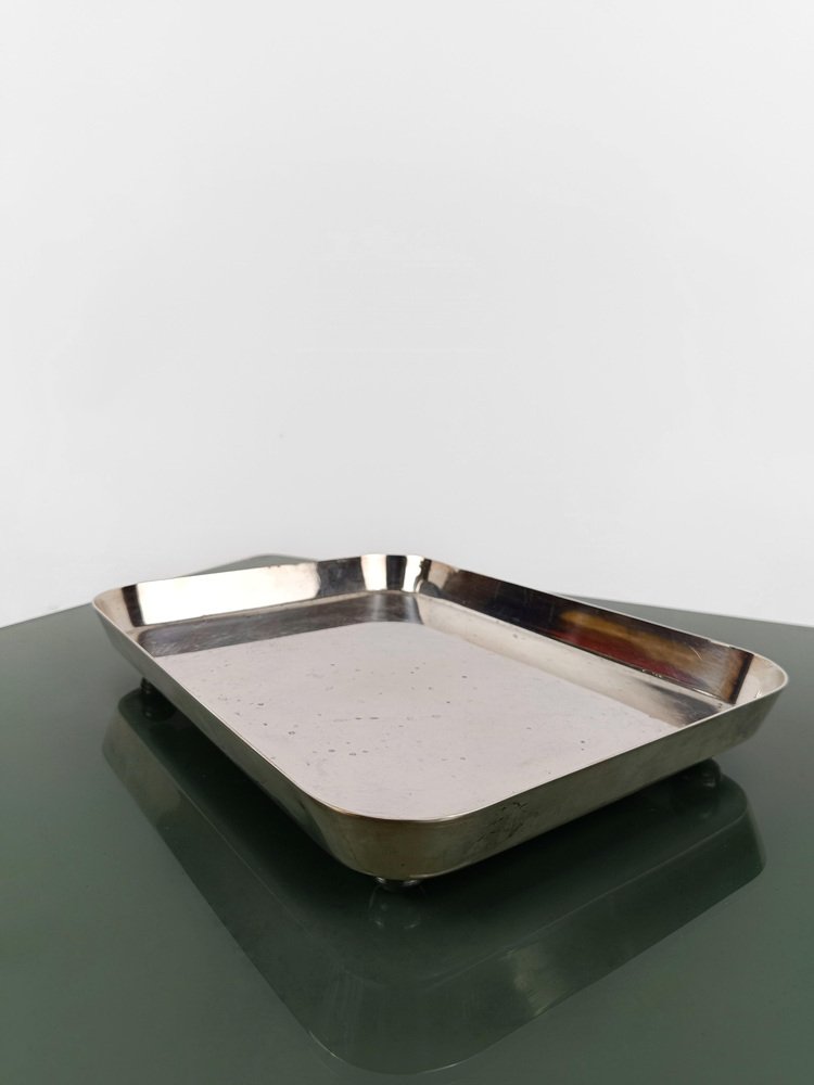 Large Vintage Italian Baroque Style Stainless Steel Tray from Alessi, 1960s