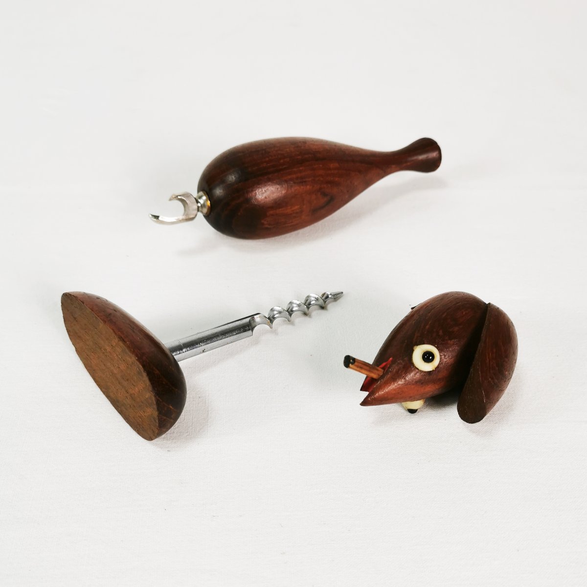 Teak Corkscrew and Bottle Opener attributed to Hans Bolling, Denmark, 1950s