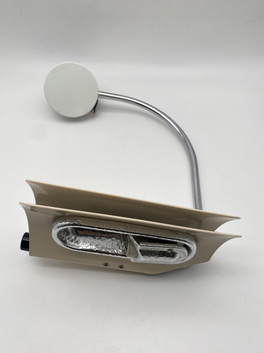 Gecchelin, in particular, was the most prolific contributor to Skipper’s lighting output. Concurrent to stints designing for Italy’s most progressive lighting manufacturers—Guzzini, Oluce, Venini, and Gino Sarfatti’s Arteluce—Gecchelin produced an array of minimalist lamps (table, wall, floor, desk, ceiling) for the company, often crafted in premium materials like marble and lacquered metal. A specific standout Skipper design includes Gecchelin’s Mezzeluna (1975), a high-voltage and quite tall floor lamp in Cararra marble and white lacquered metal. Beyond Gecchelin, Skipper’s lighting portfolio includes work from Claudio Sallochi, whose Riflessione Floor Lamp (ca. 1960s) was manufactured by the company in the 1970s and is now fetching high valuations on the vintage market.