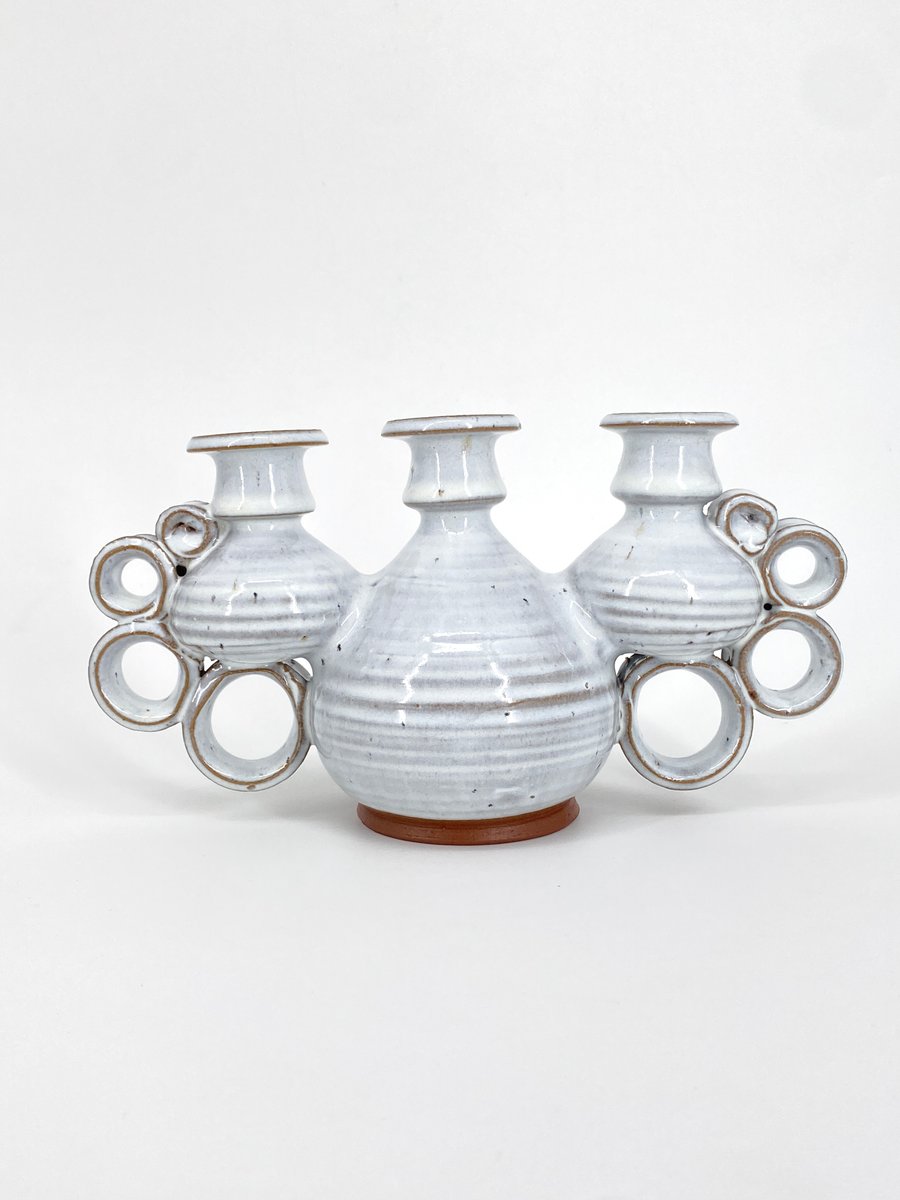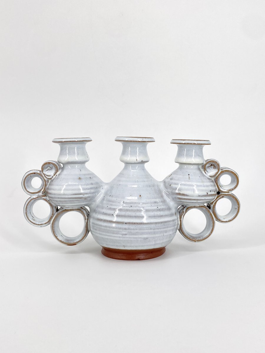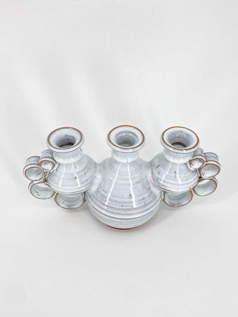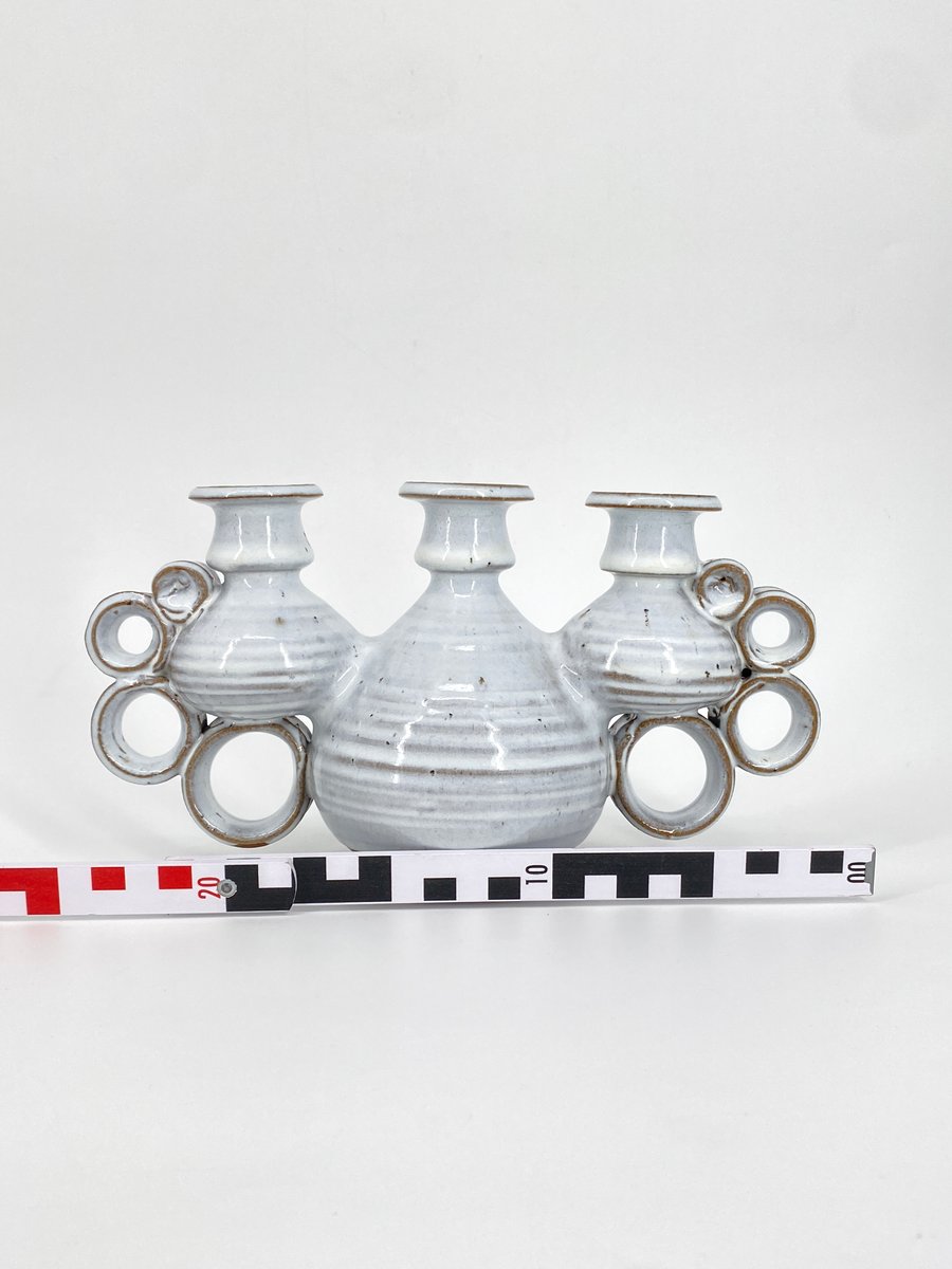 Triple Studio Ceramic Candlestick by Leif and Lizzy Larsen, Denmark, 1970s