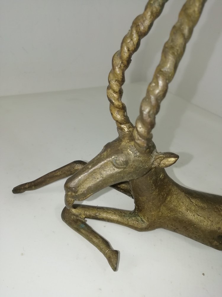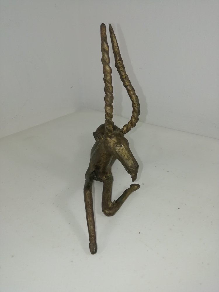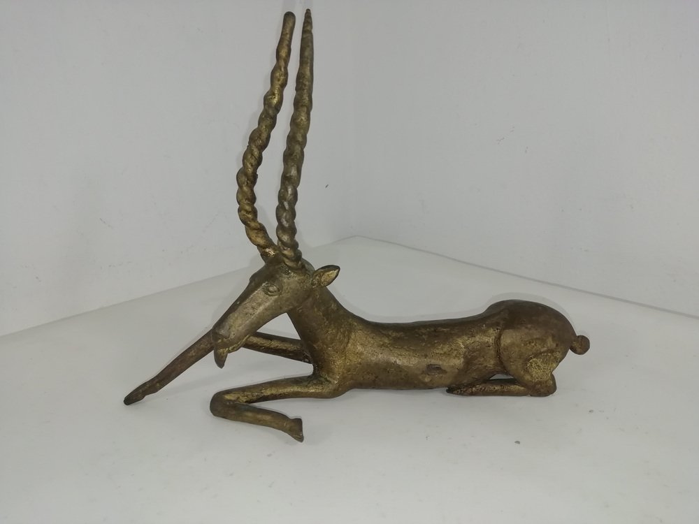 Vintage African Bronze Antelope, Benin, 1940s