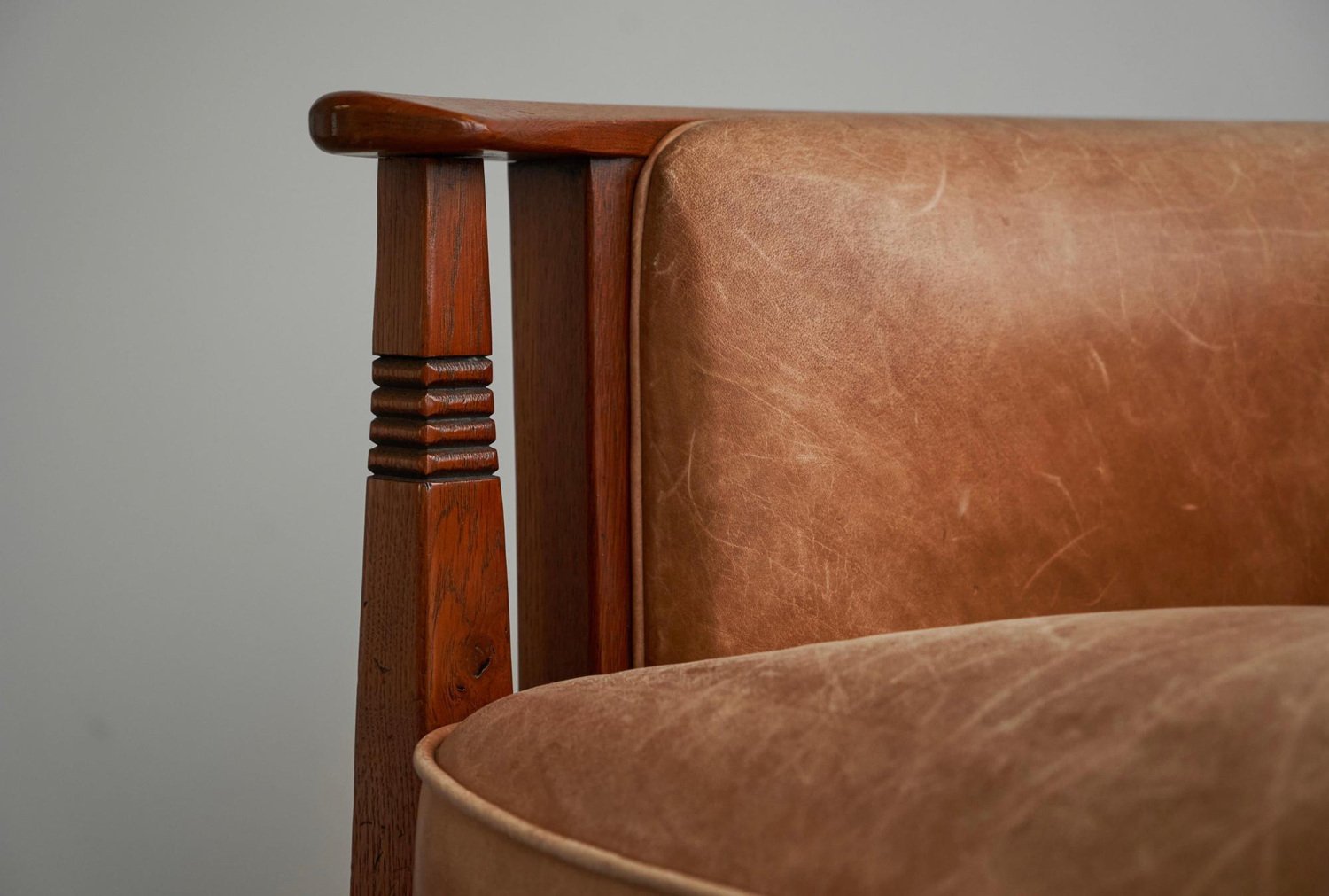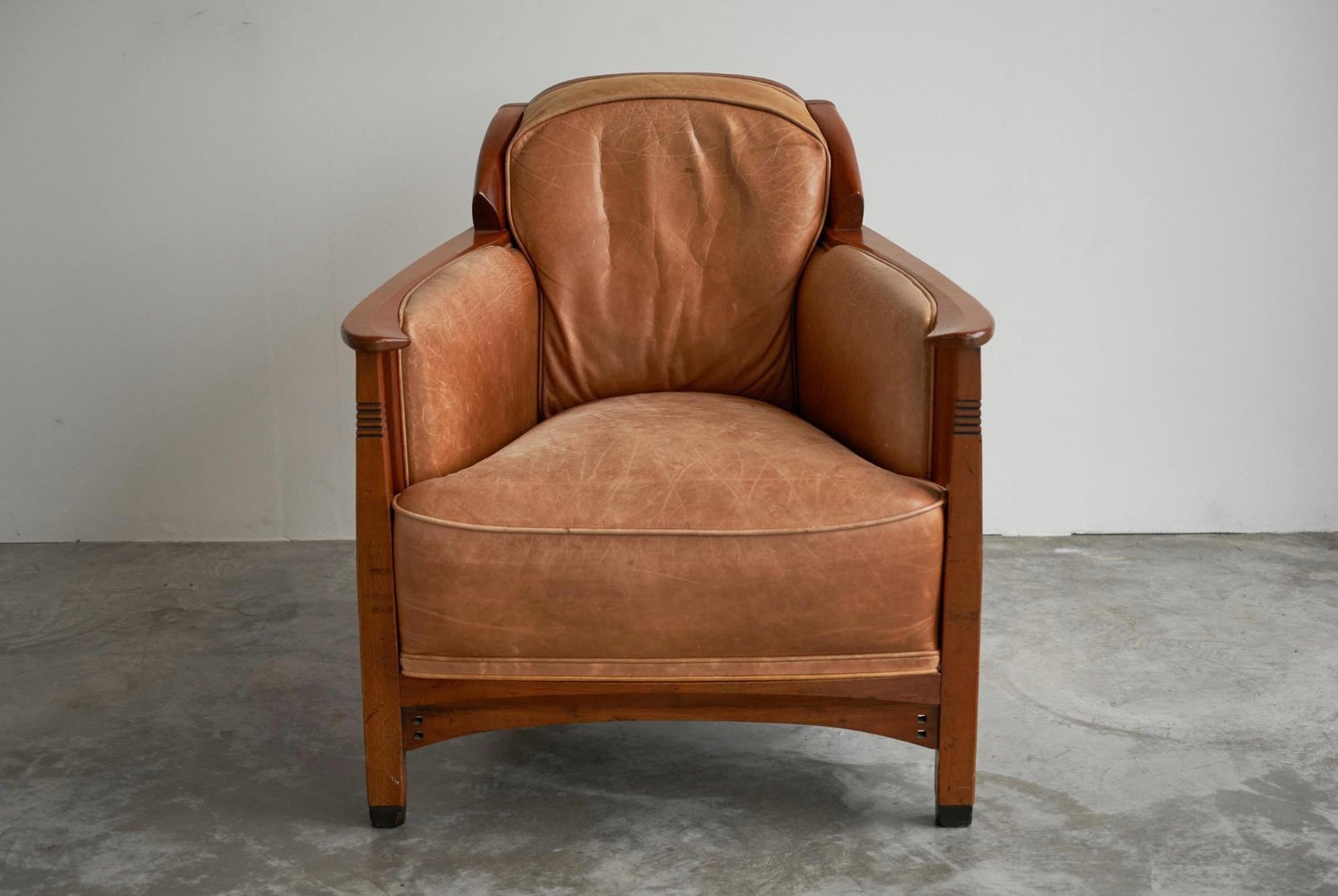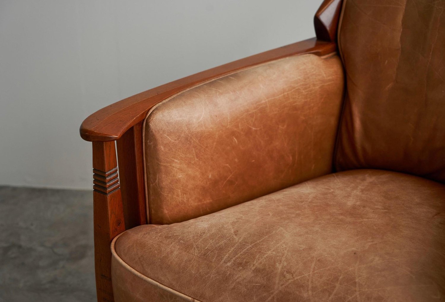 Vintage Art Deco Chair in Oak and Cognac Leather, 1980s