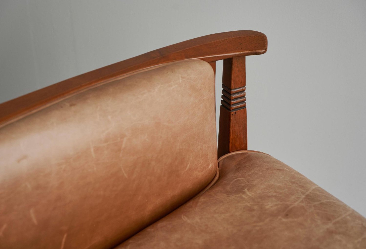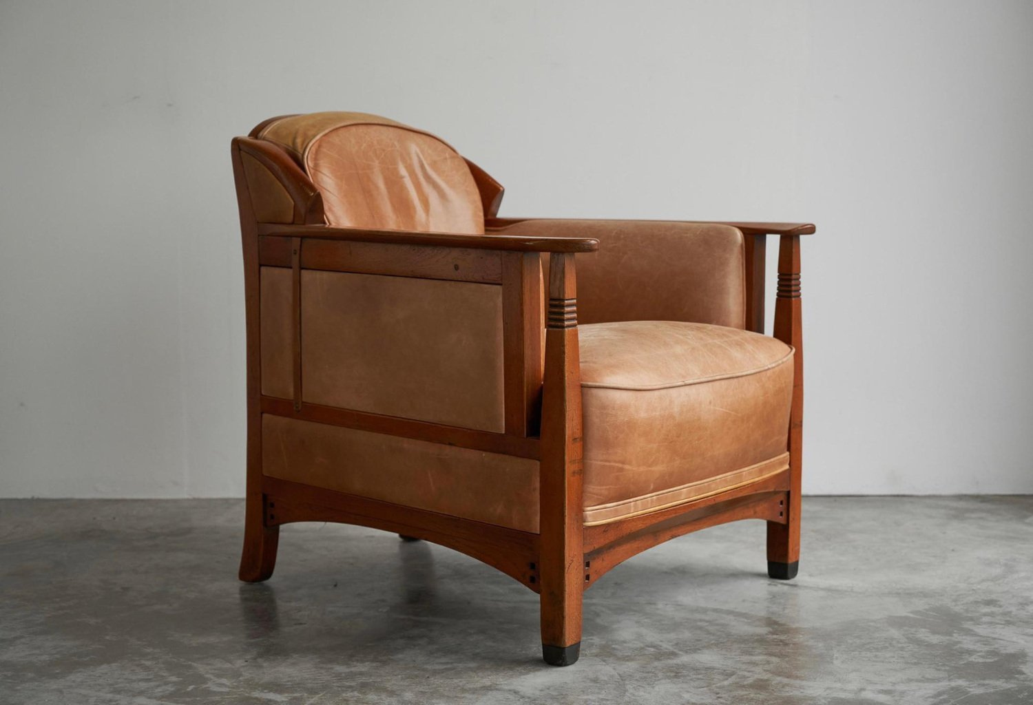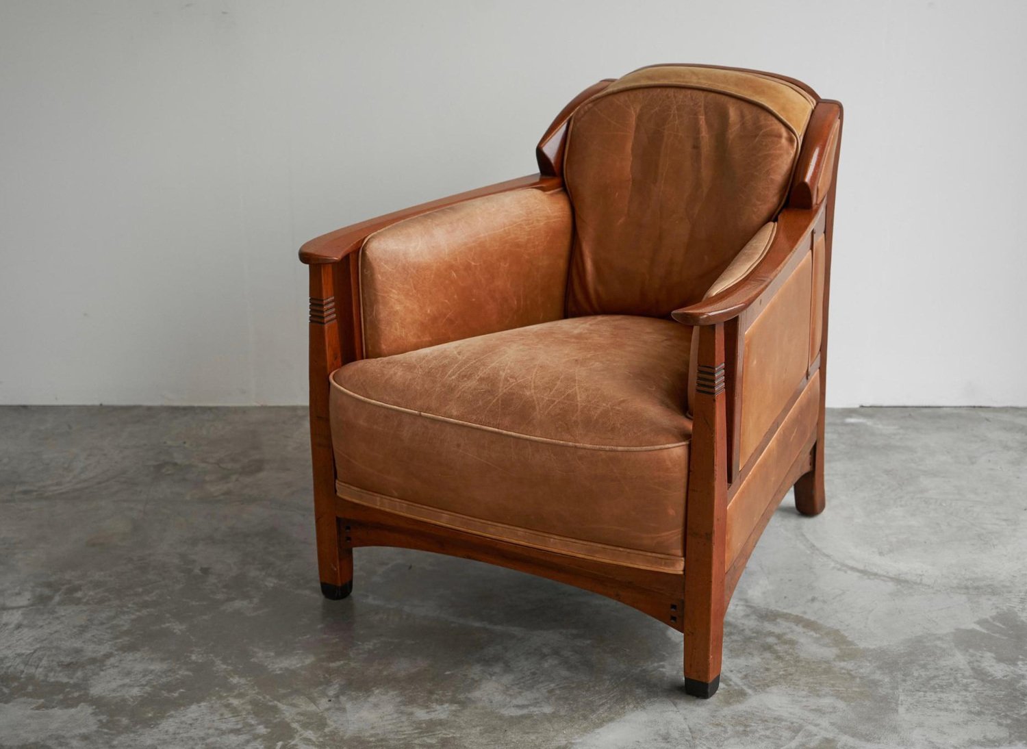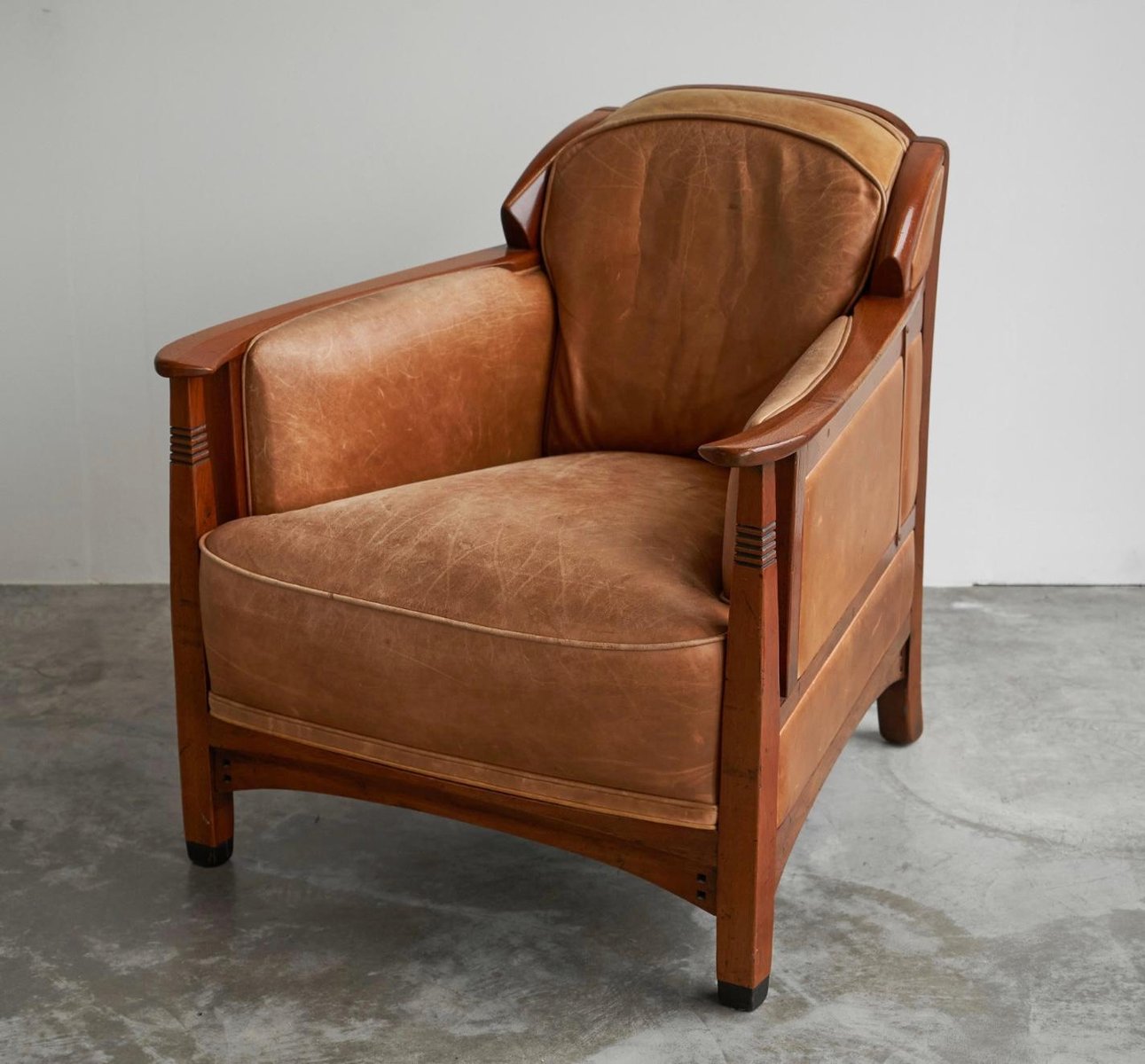 Vintage Art Deco Chair in Oak and Cognac Leather, 1980s