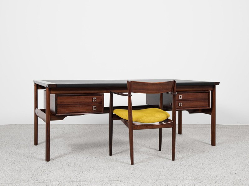 Vintage Danish Desk in Rosewood and Black Leather by Arne Vodder for Sibast, 1960s