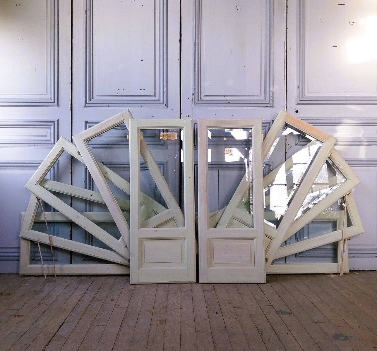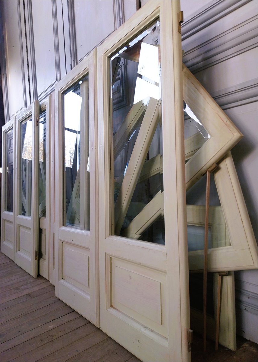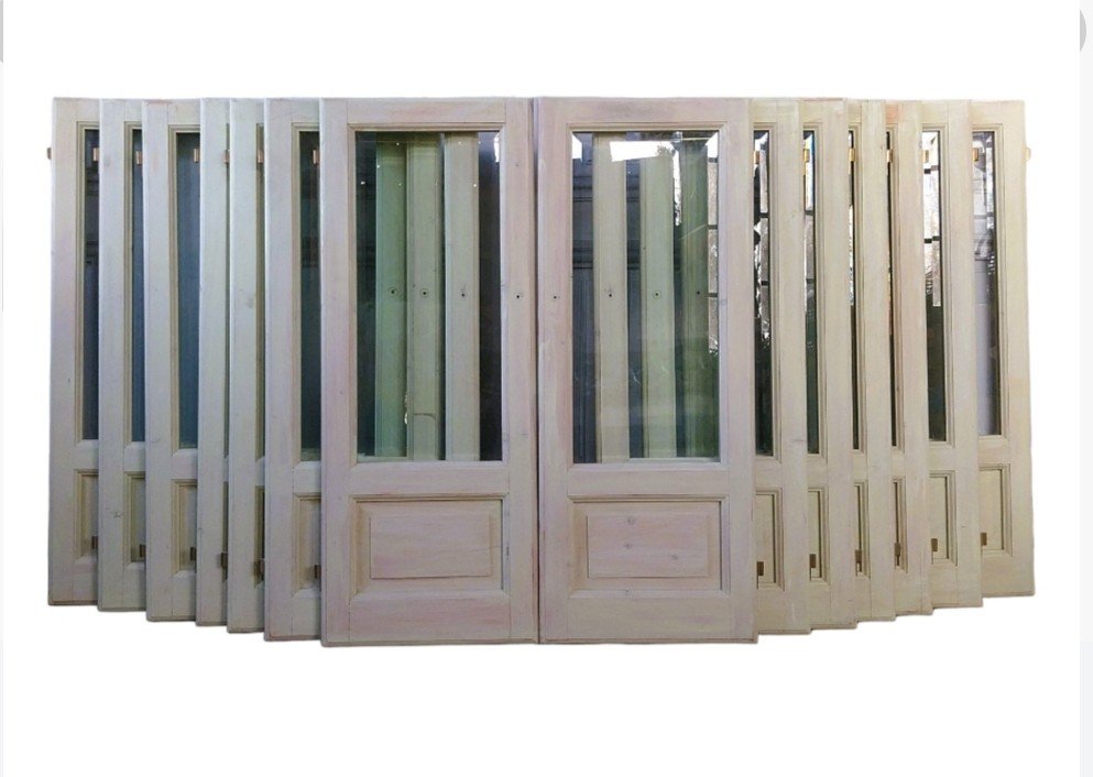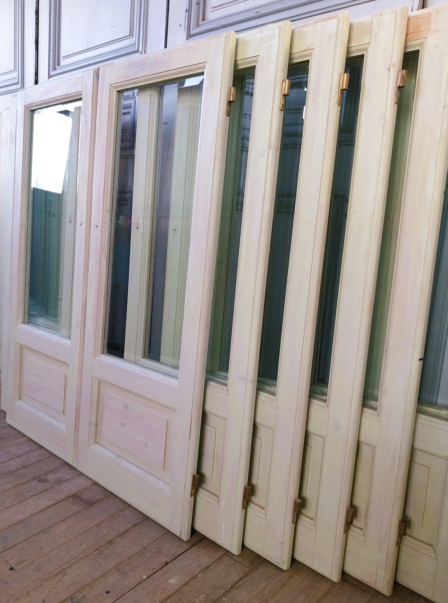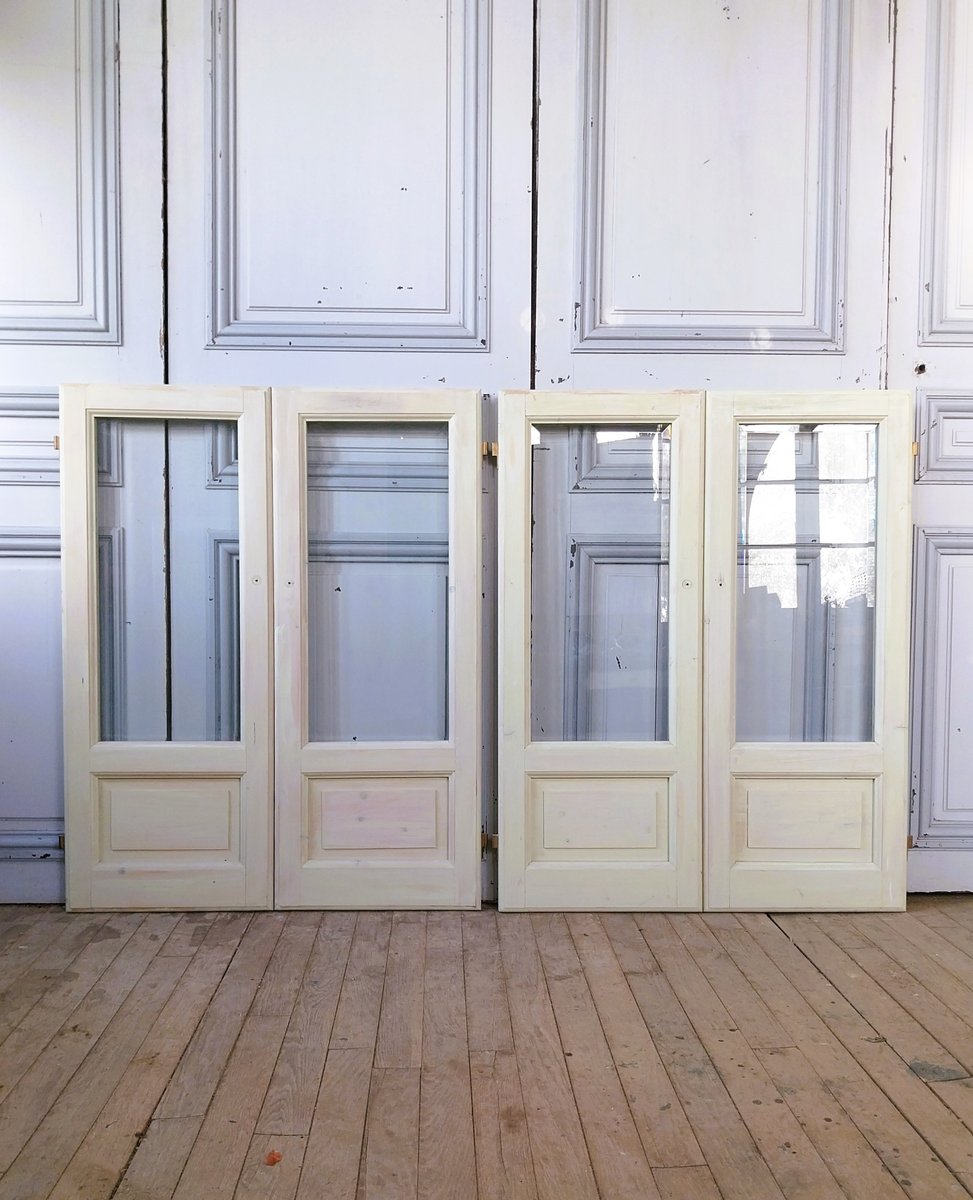 Vintage Glass Doors with Beveled Glass, 1980, Set of 2