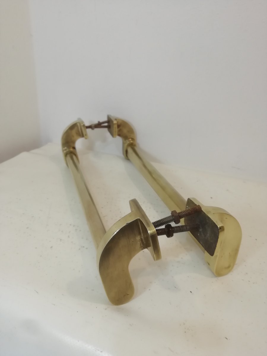 Vintage Italian Brass Door Handles, 1940s, Set of 2