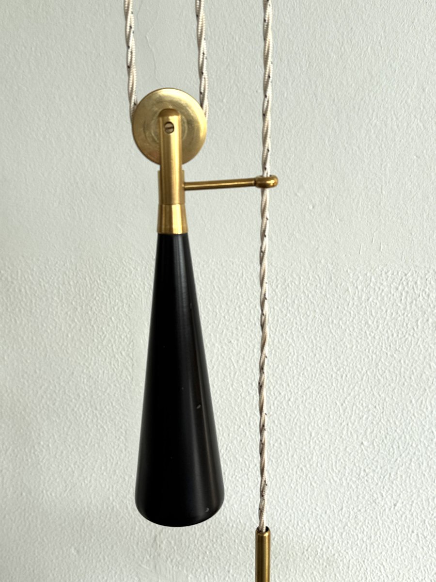 Italian lighting manufacturer Arredoluce was an important proponent of postwar Italian lighting design and was founded by designer-entrepreneur Angelo Lelli (sometimes written Lelii). Lelli is thought to have established Arredoluce in 1947, the year after his lamp designs were included in the well-regarded Domus magazine.