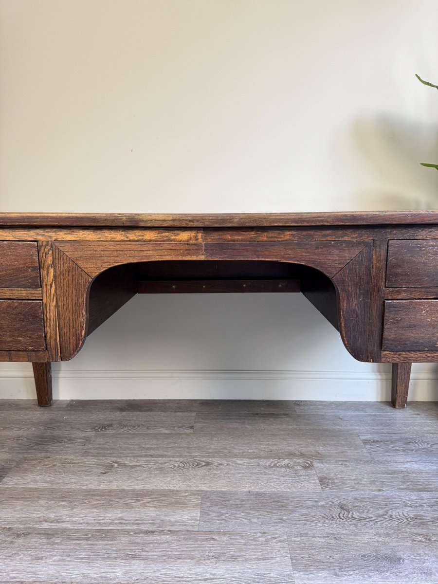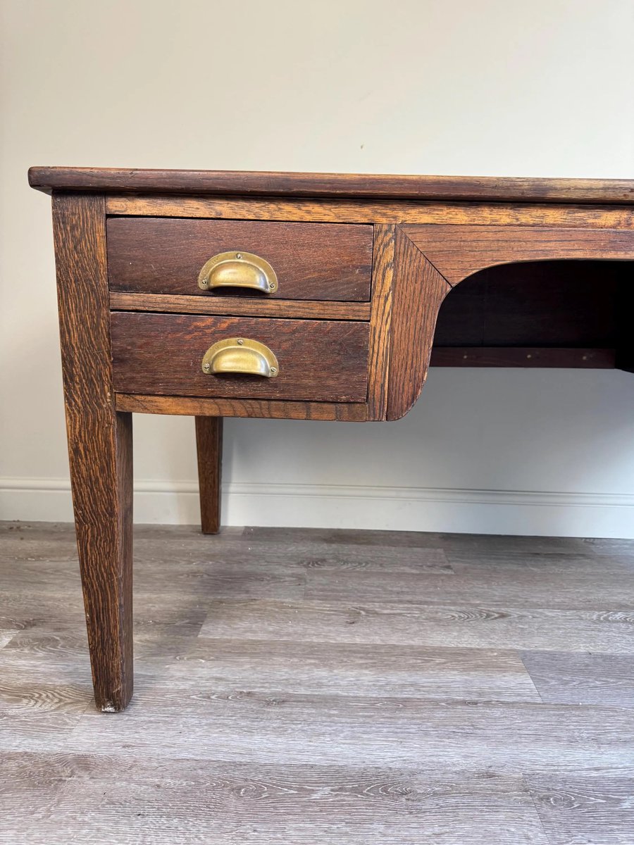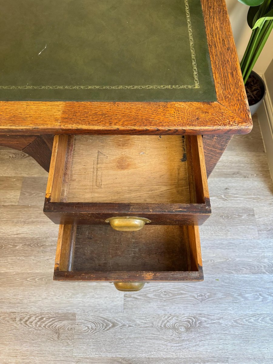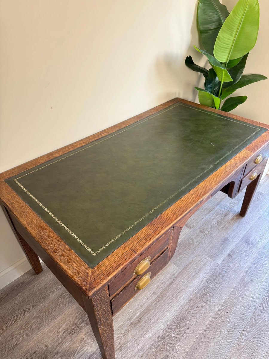 Vintage Presidential Writing Desk in Oak with Original Leather Top, 1936