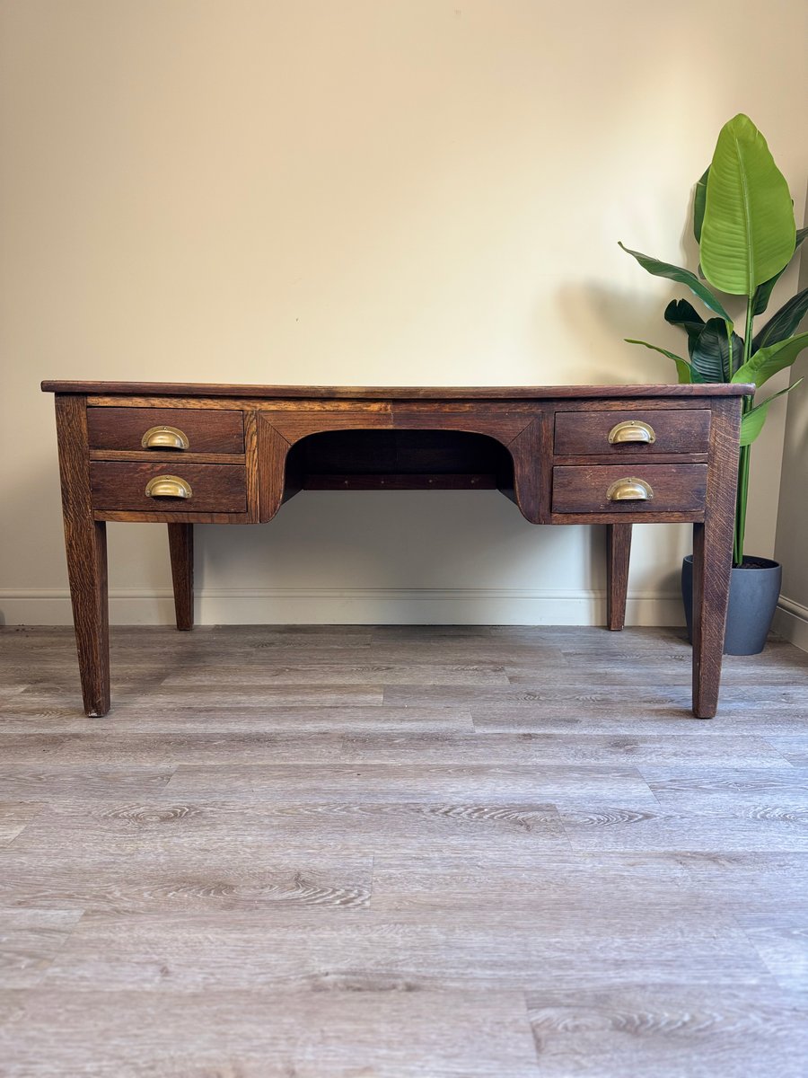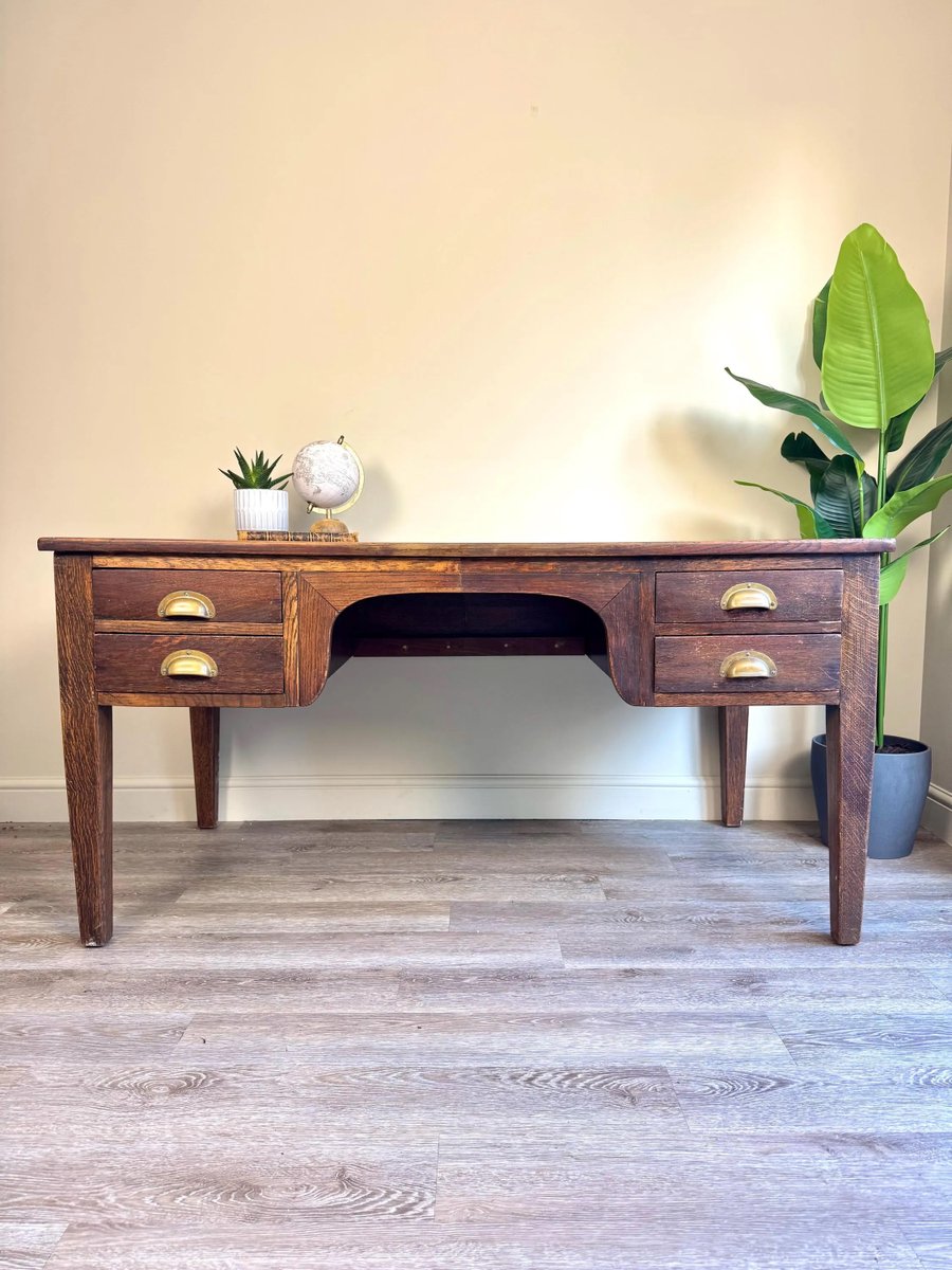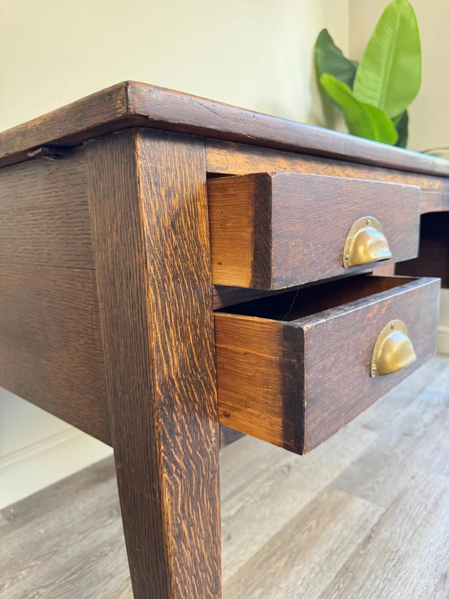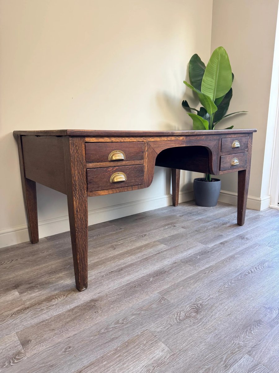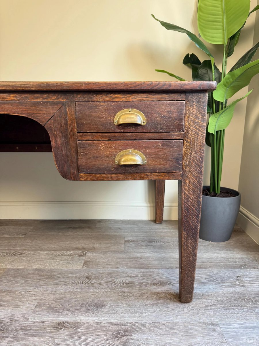Vintage Presidential Writing Desk in Oak with Original Leather Top, 1936