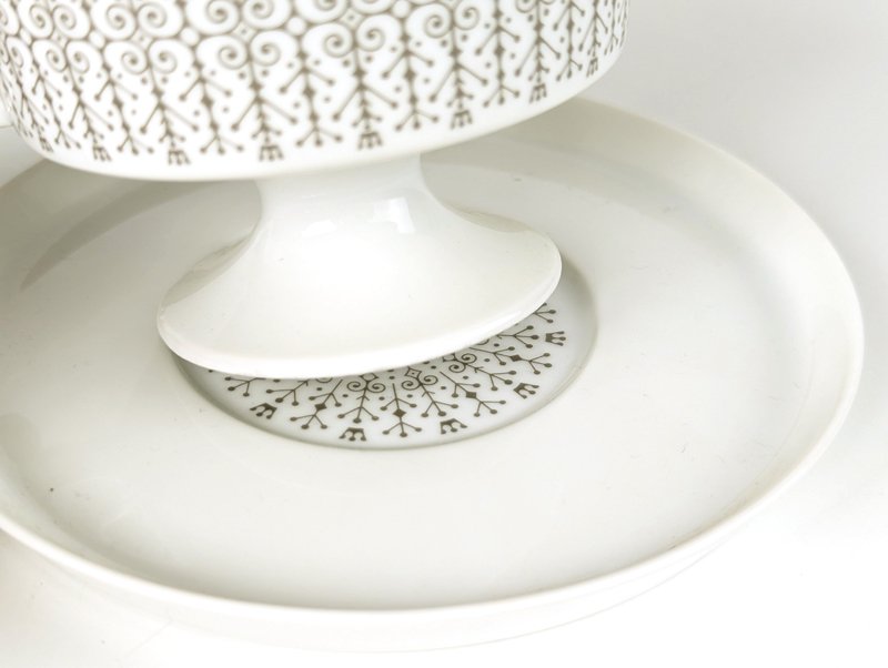 In the postwar era, Rosenthal’s most famous tableware lines have included 2000 by Raymond Loewy and Richard Latham (1954), Magic Flute by Bjørn Wiinblad (1959), Suomi by Timo Sarpaneva (1976), and Moon by Jasper Morrison (1997). The company has enjoyed many popular and critically acclaimed collaborations with designers and brands, like Salvador Dalì, Tapio Wirkkala, Walter Gropius, Andy Warhol, Ron Arad, Enzo Mari, Konstantin Grcic, and Versace.