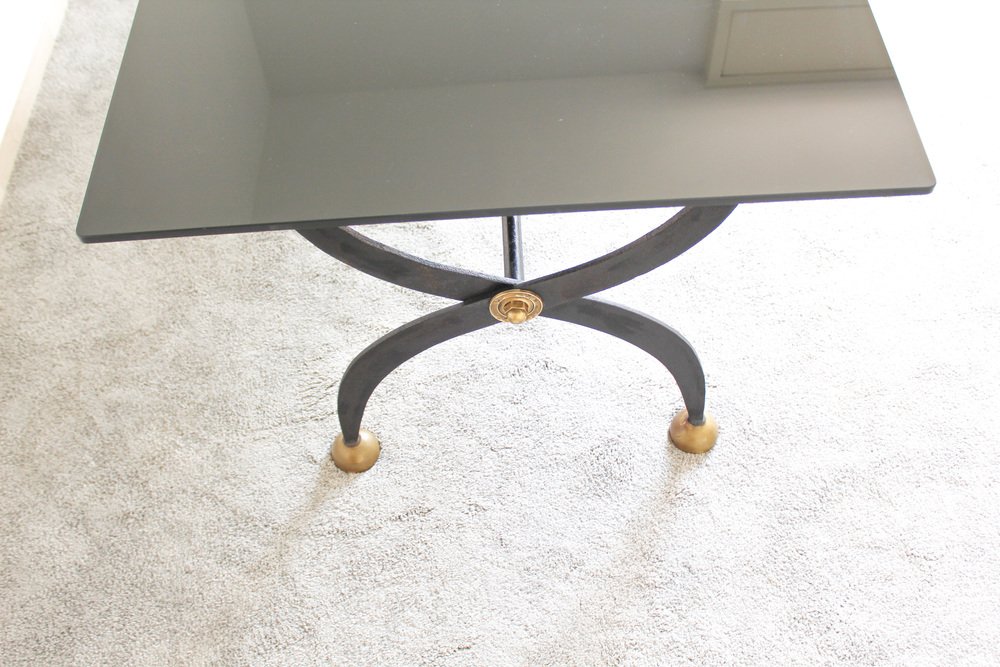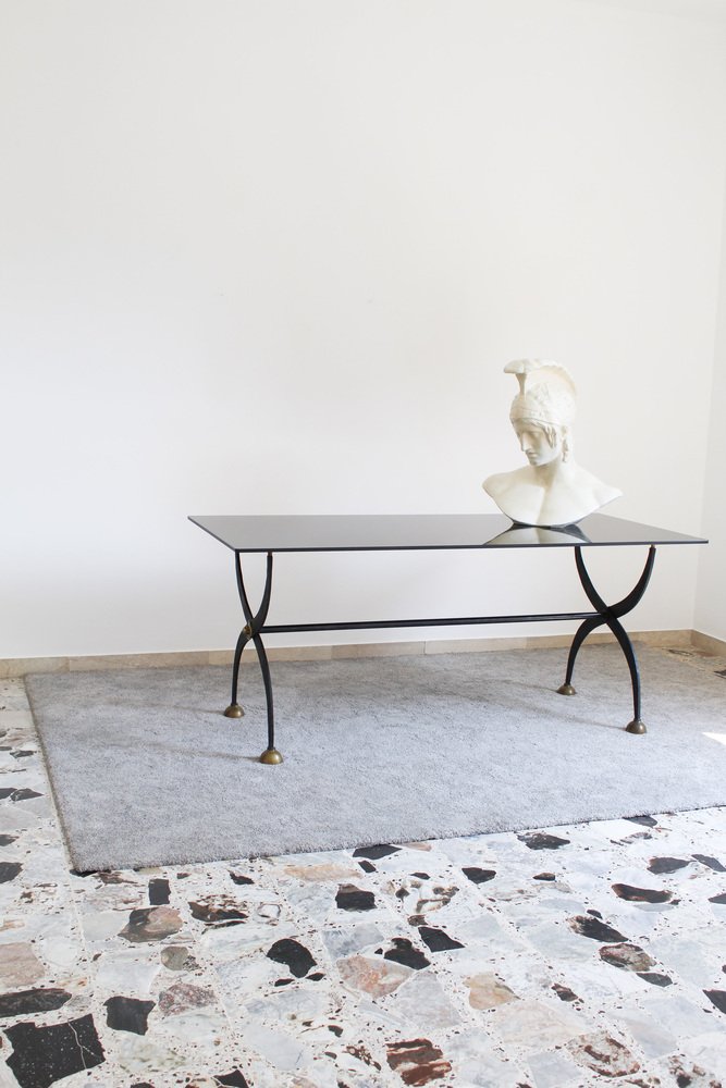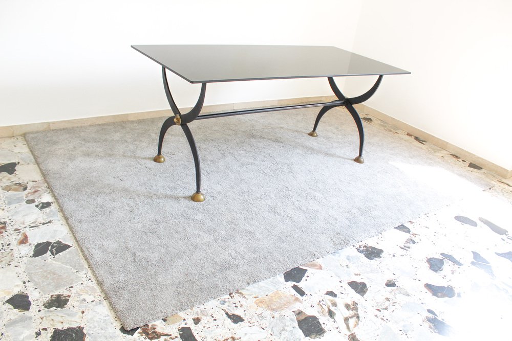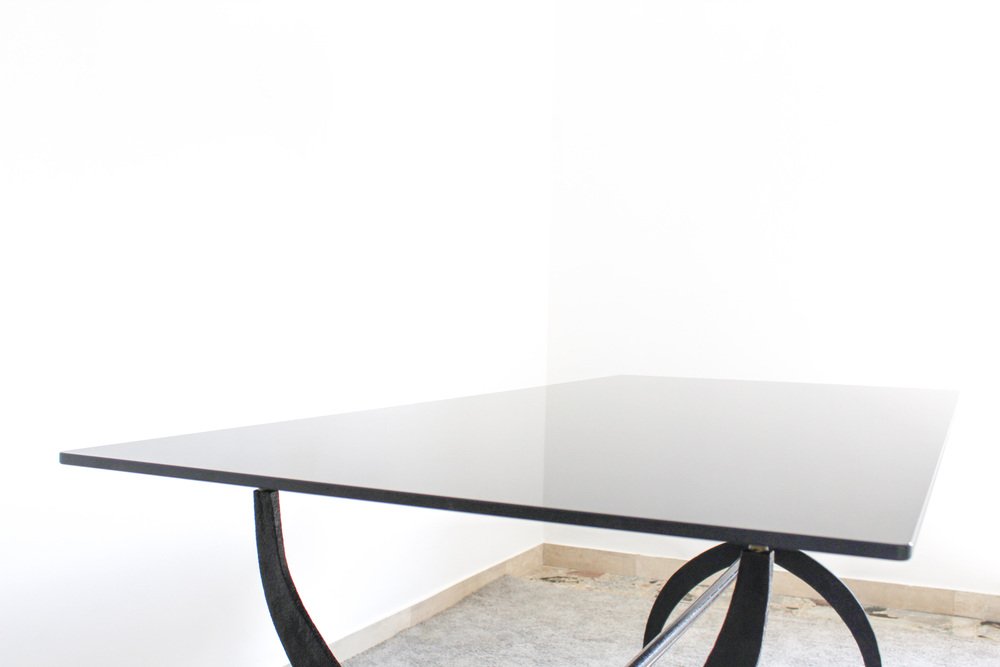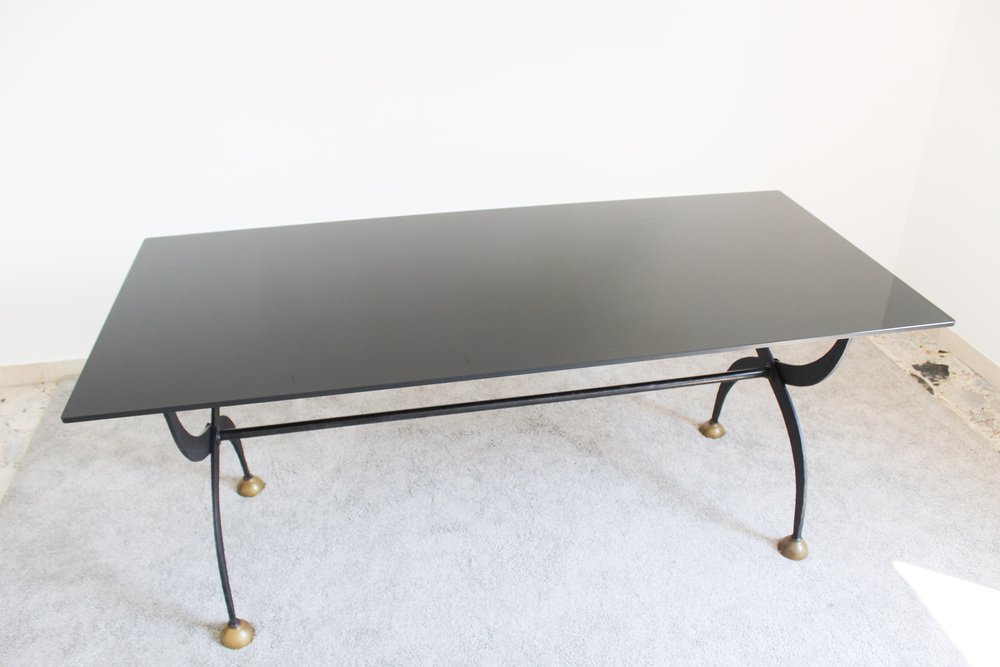 Wrought Iron Dining Table With Black Lacquered Glass, Italy, 1970s