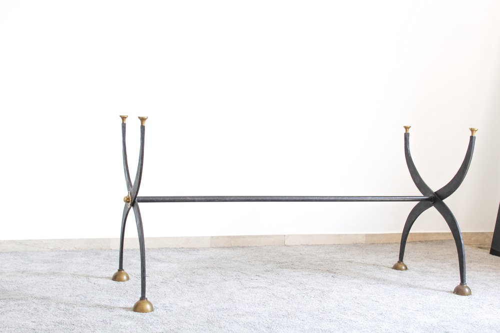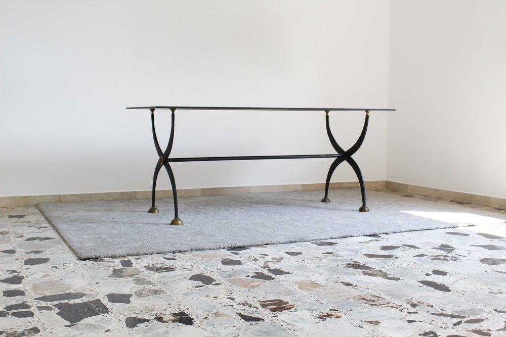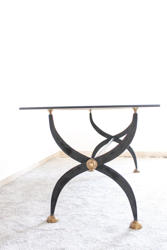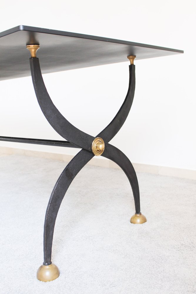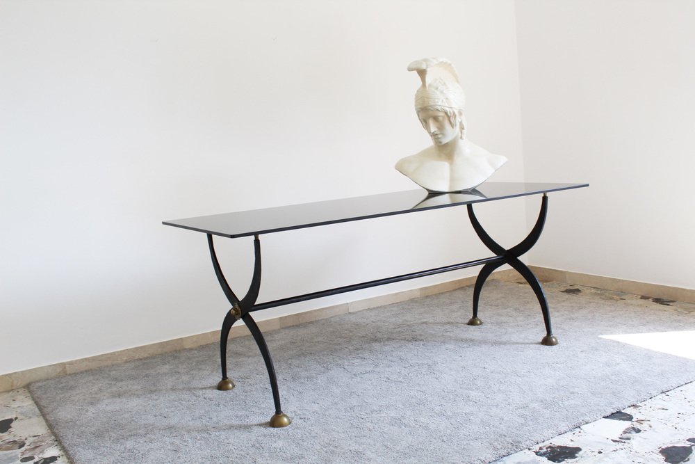 Wrought Iron Dining Table With Black Lacquered Glass, Italy, 1970s