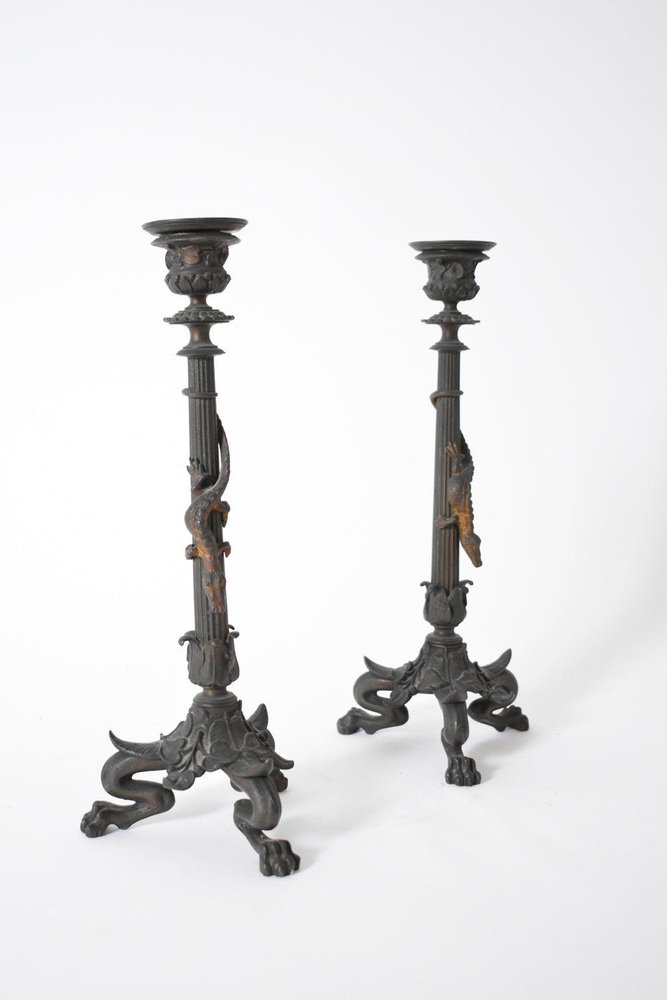 Zoomorphic Bronze Candleholders, 19th Century, Set of 2